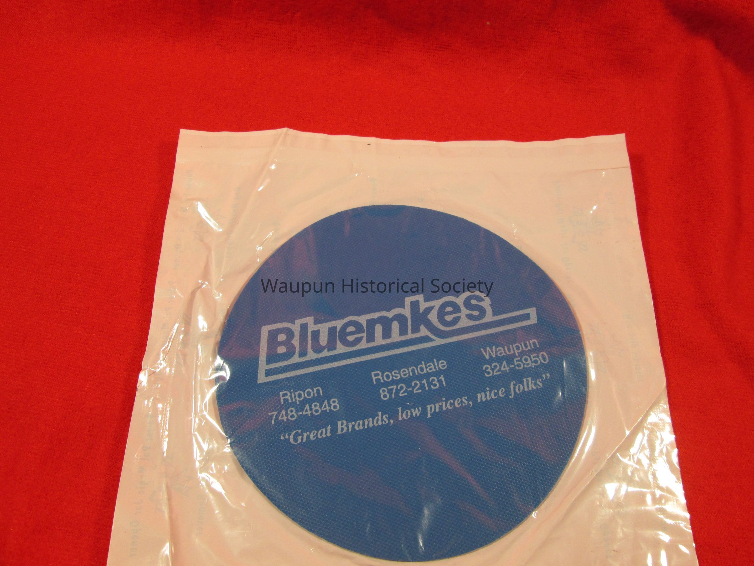 Power- Pal Magic Jar Opener with a variety of uses. From Bluemkes of Waupun, Ripon, Rosendale. "Great Brands, low prices, nice folks". Made of rubber and blue in color.