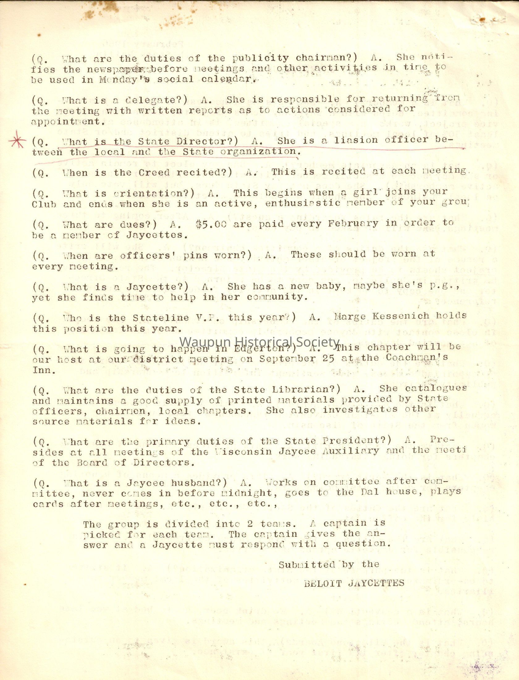 Submitted by the Beloit JaycettesAcquisition