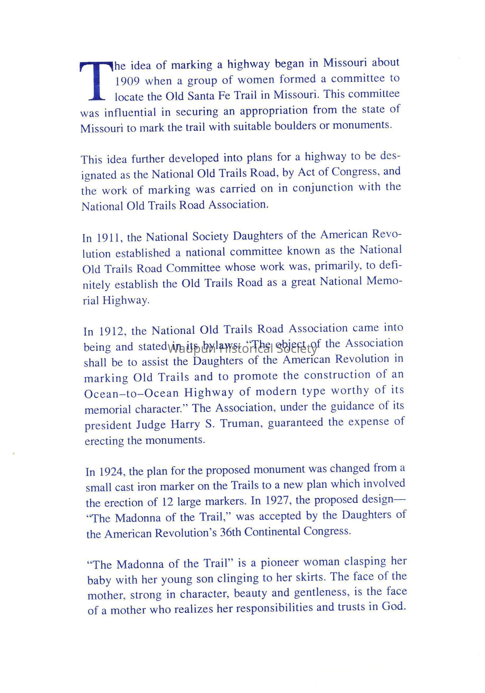 Pamphlet, Madonna of the Trail Monument, DAREntry/Object ID