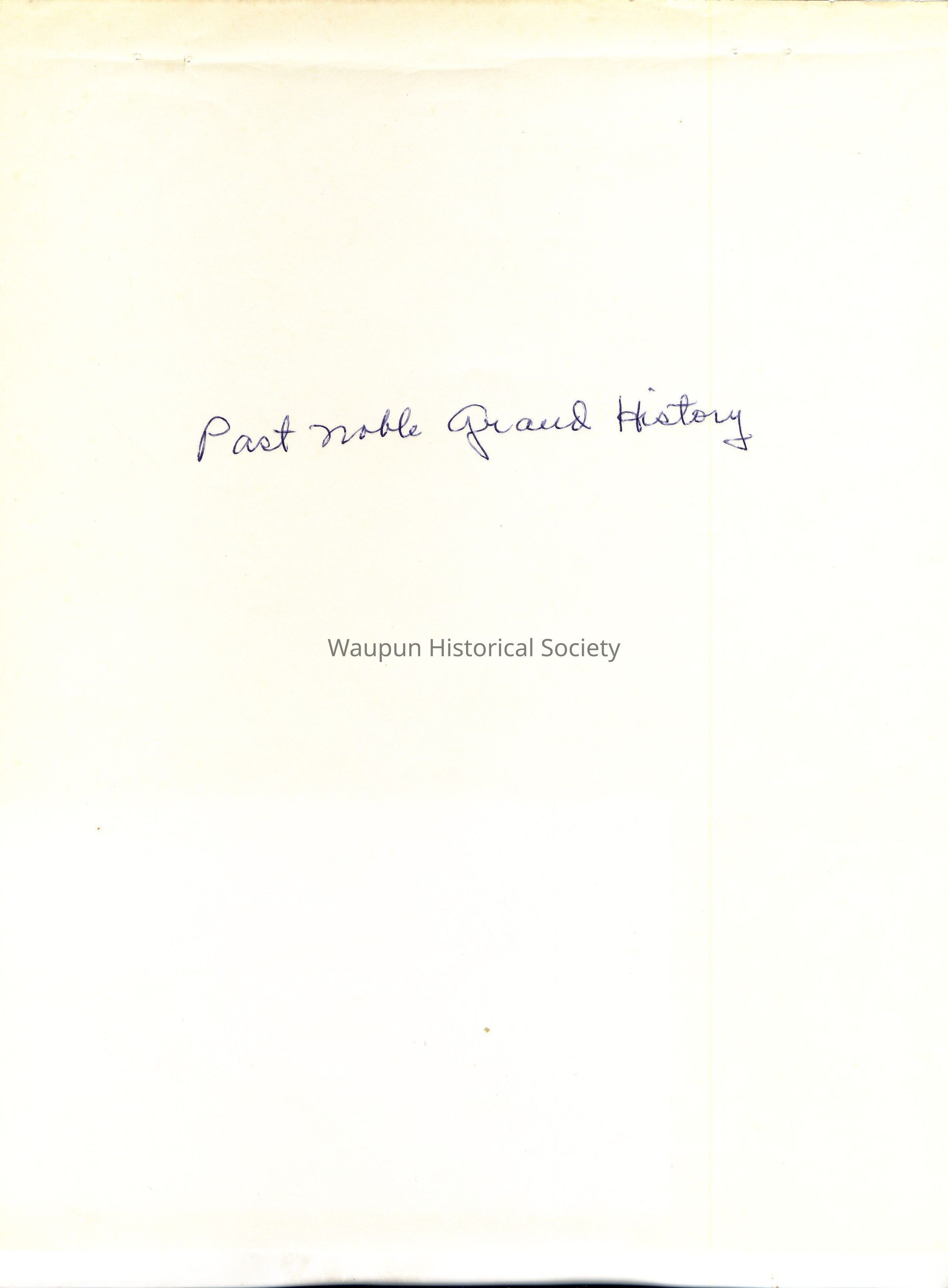 Document - "Past Noble Grand History" found in file cabinet in upstairs office in folder labeled, Eastern Star and Masonic Info and other lodges.