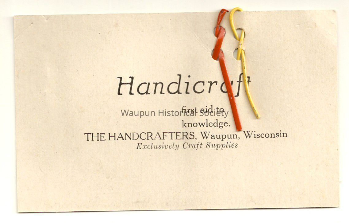 On the back of the card it reads: "Handicraft first aid to knowledge."