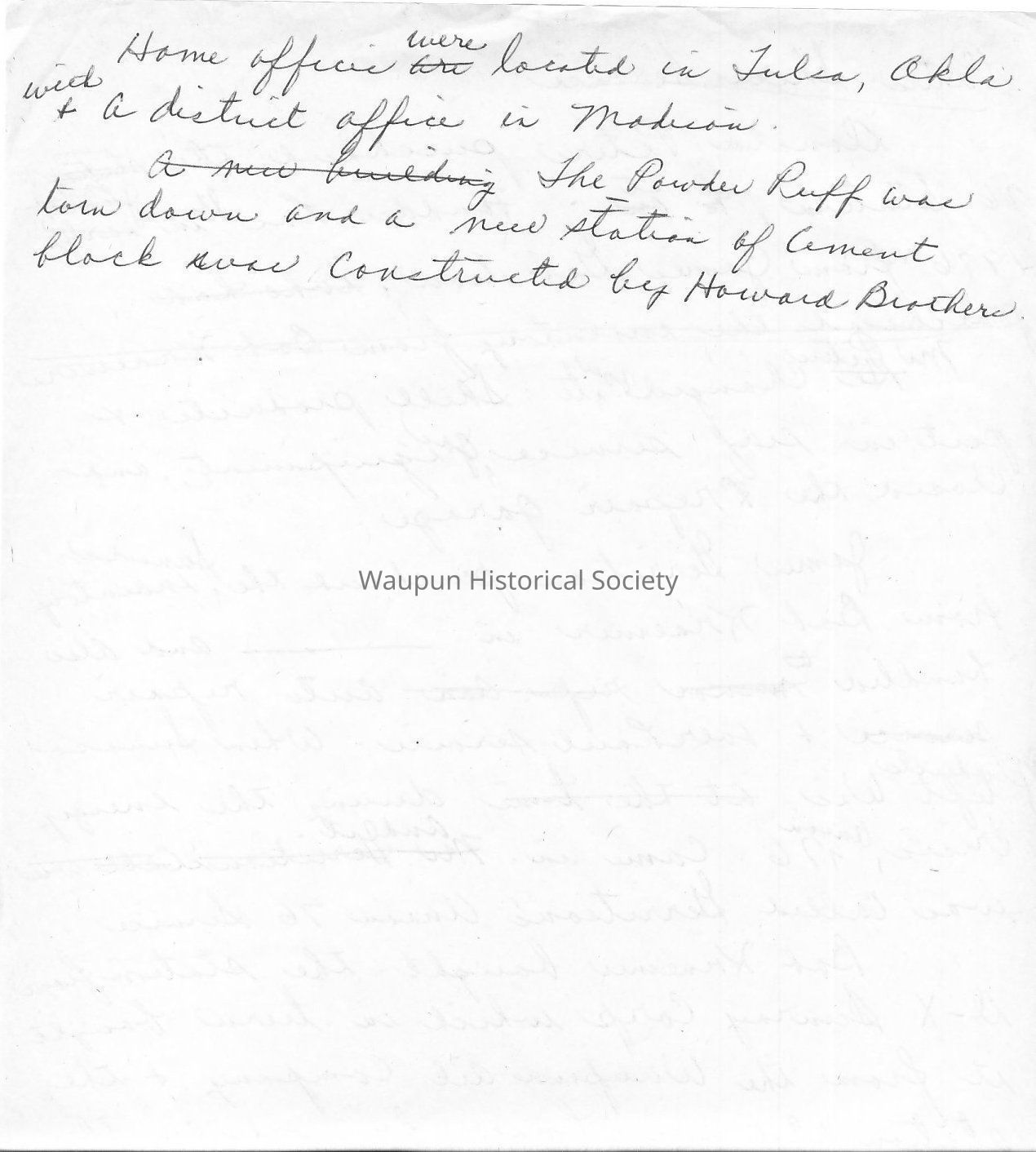 The Powder Puff was torn down and a new station of cement block was constructed by Howard Brothers.Acquisition
