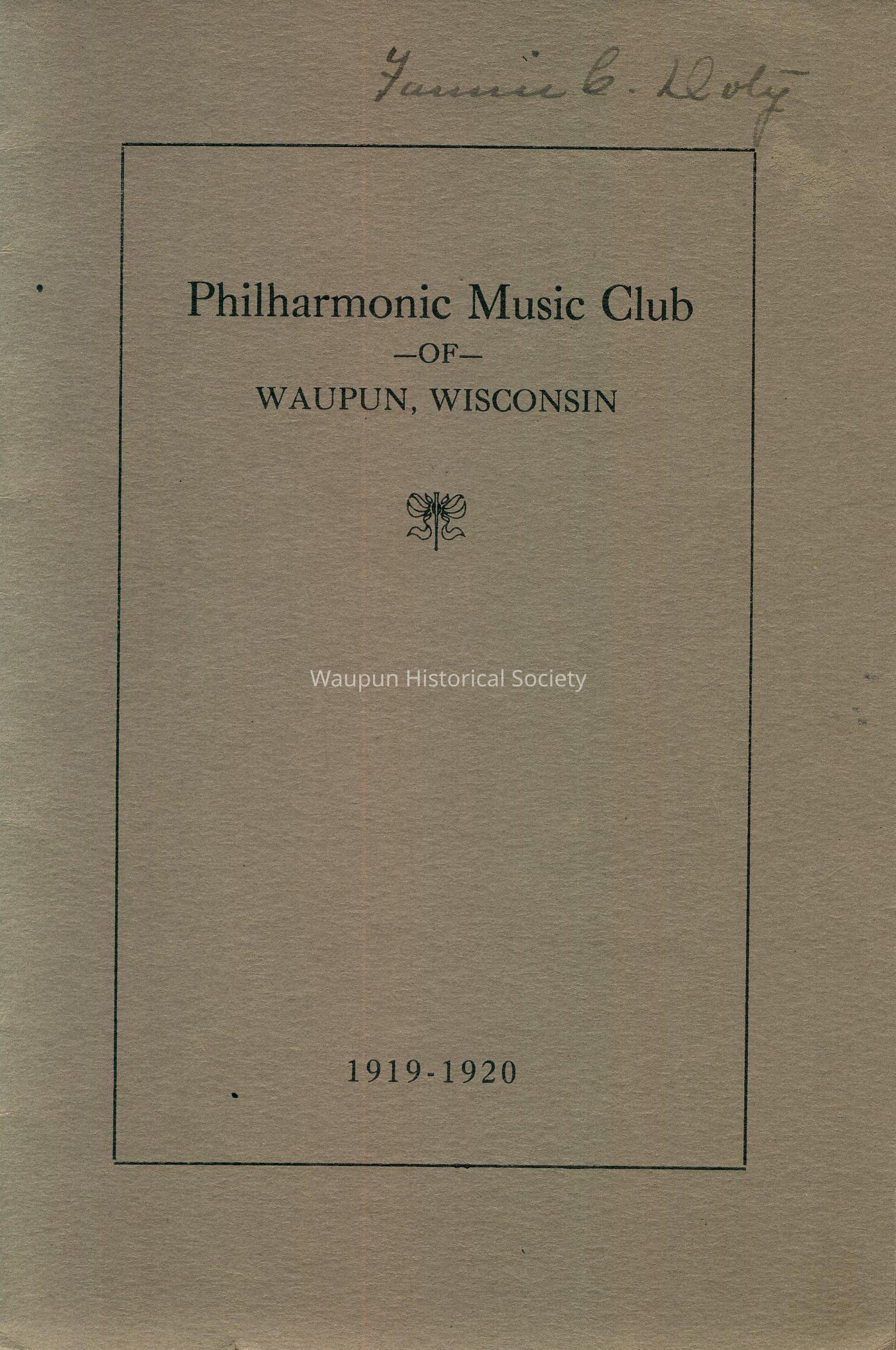 Philharmonic Music Club of Waupun, Wisconsin, 1919-1920, Yearbook