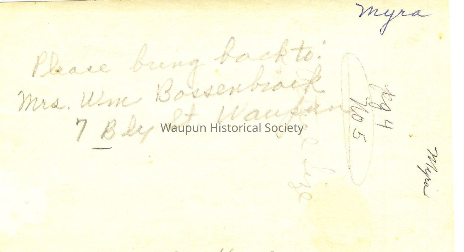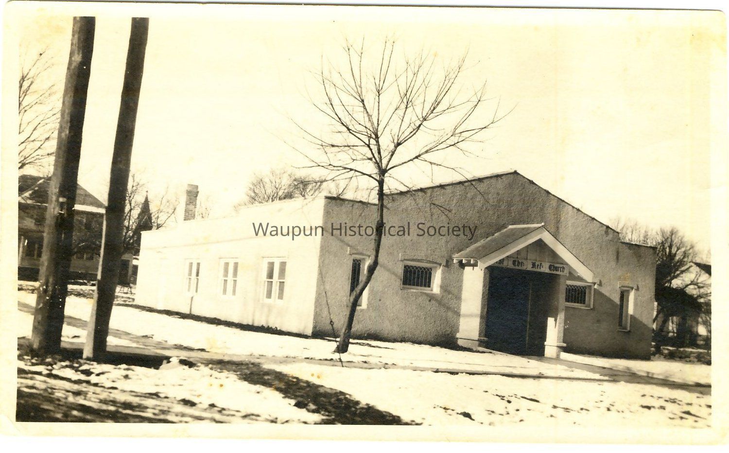 Black and white photo of First Christian Reformed Church of Waupun given by Mrs. Wm. Bossenbroek, 7 Bly St., Waupun, Wis. The name Myra is written on back of photo, also. This photo was attached to the historical information on The First Christian Reformed Church of Waupun for the 1976 Bicentennial Celebration in Waupun.Acquisition