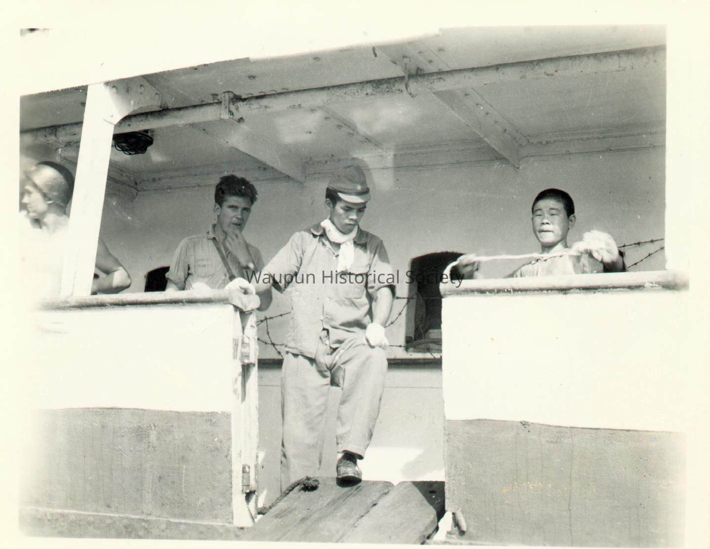 This photo shows the Japanese soldiers coming off the captured Japanese ship described in photo 2001.0019.0024Acquisition