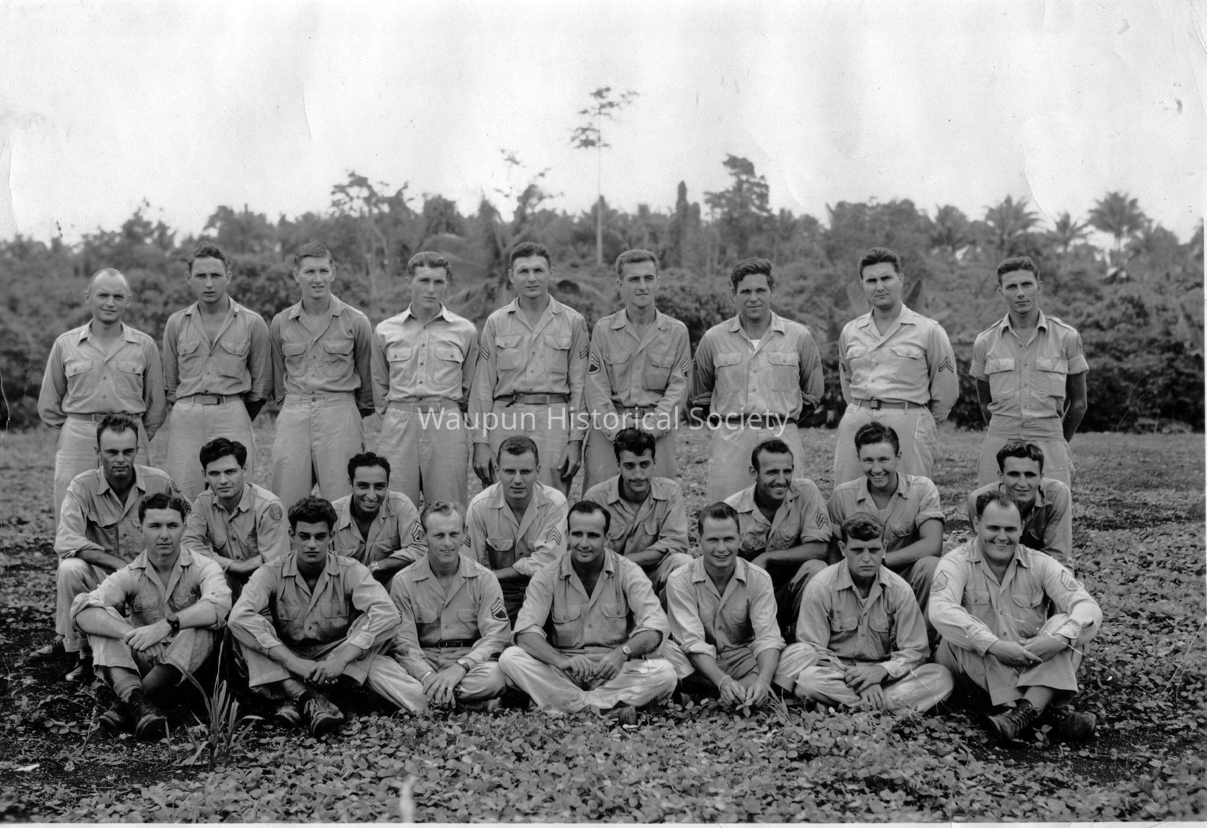 Mr. Walter Riel was a Sergeant with the 38th Photo Reconnaissance Squadron, 13th Air Force from 1942-1946. The Riel Collection is a series of photos that were given to the Waupun Historical Society by Mr. Riel. Mr. Riel is 4th from the left in the second row.Acquisition