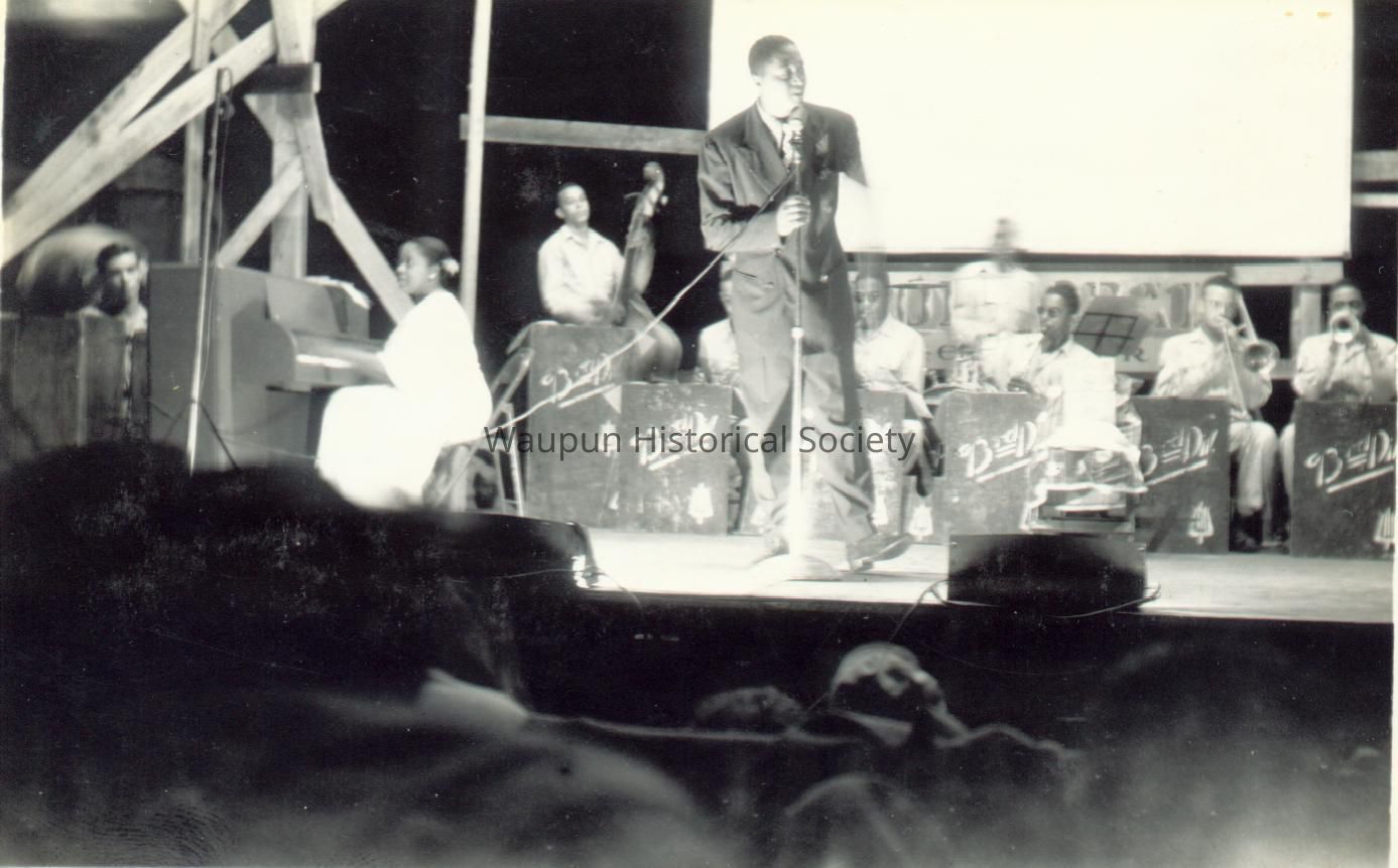 Mr. Walter Riel was a Sergeant with the 38th Photo Reconnaissance Squadron, 13th Air Force from 1942-1946. The Riel Collection is a series of photos that were given to the Waupun Historical Society by Mr. Riel. This photo shows a U.S.O. Show on Moratai.Acquisition