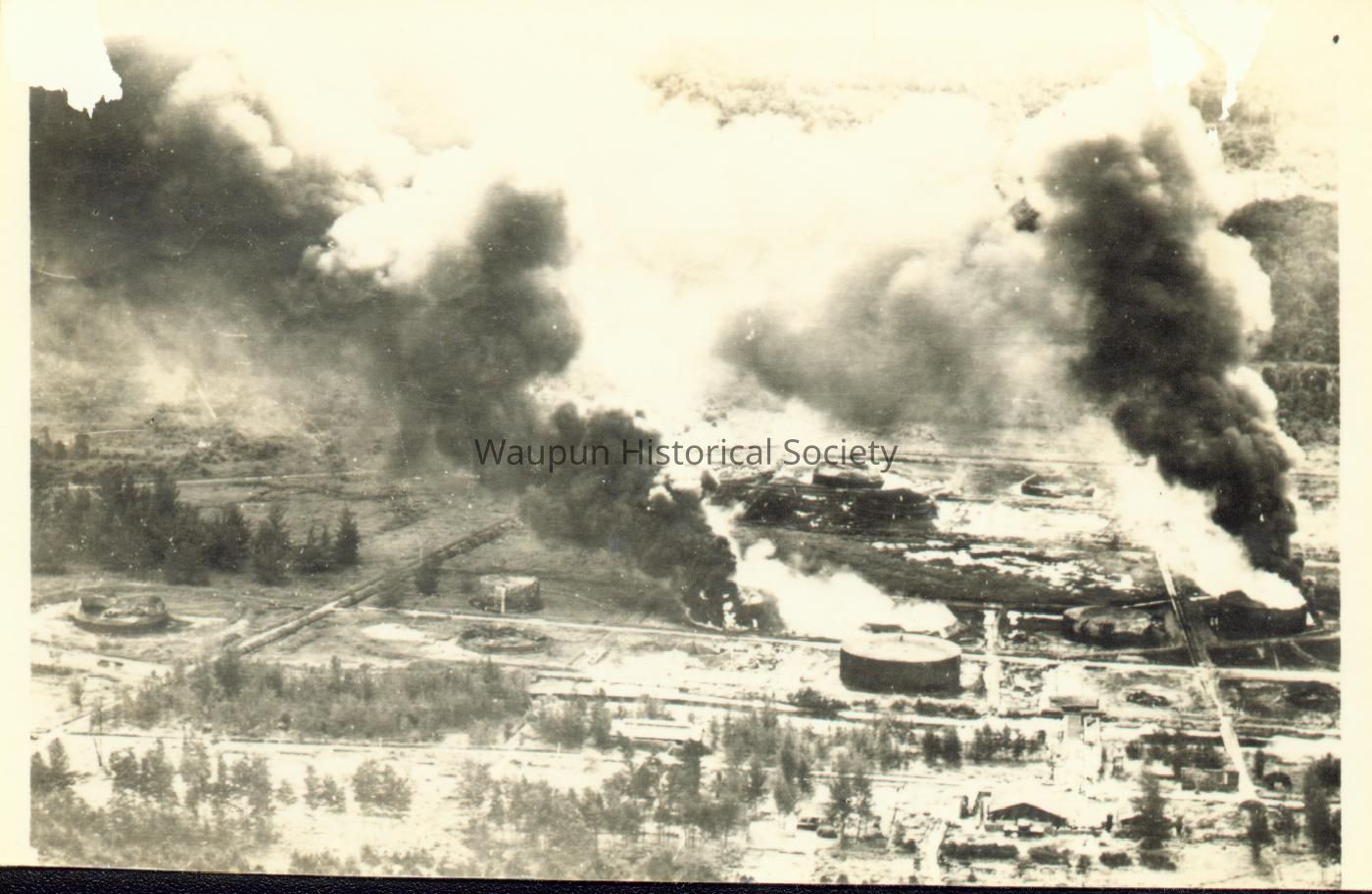 Mr. Walter Riel was a Sergeant with the 38th Photo Reconnaissance Squadron, 13th Air Force from 1942-1946. The Riel Collection is a series of photos that were given to the Waupun Historical Society by Mr. Riel. Oil Field after being bombed by U.S. Troops.Acquisition