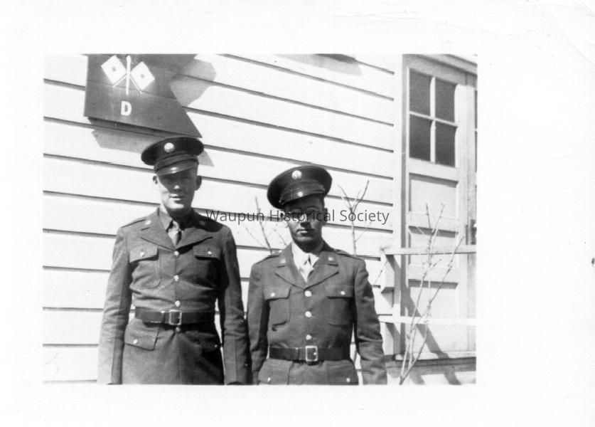 Mr. Walter Riel was a Sergeant with the 38th Photo Reconnaissance Squadron, 13th Air Force from 1942-1946. The Riel Collection is a series of photos that were given to the Waupun Historical Society by Mr. Riel. This photo shows Ted DeVries and Walter Reil, who enlisted together on Dec. 7, 1942.Acquisition