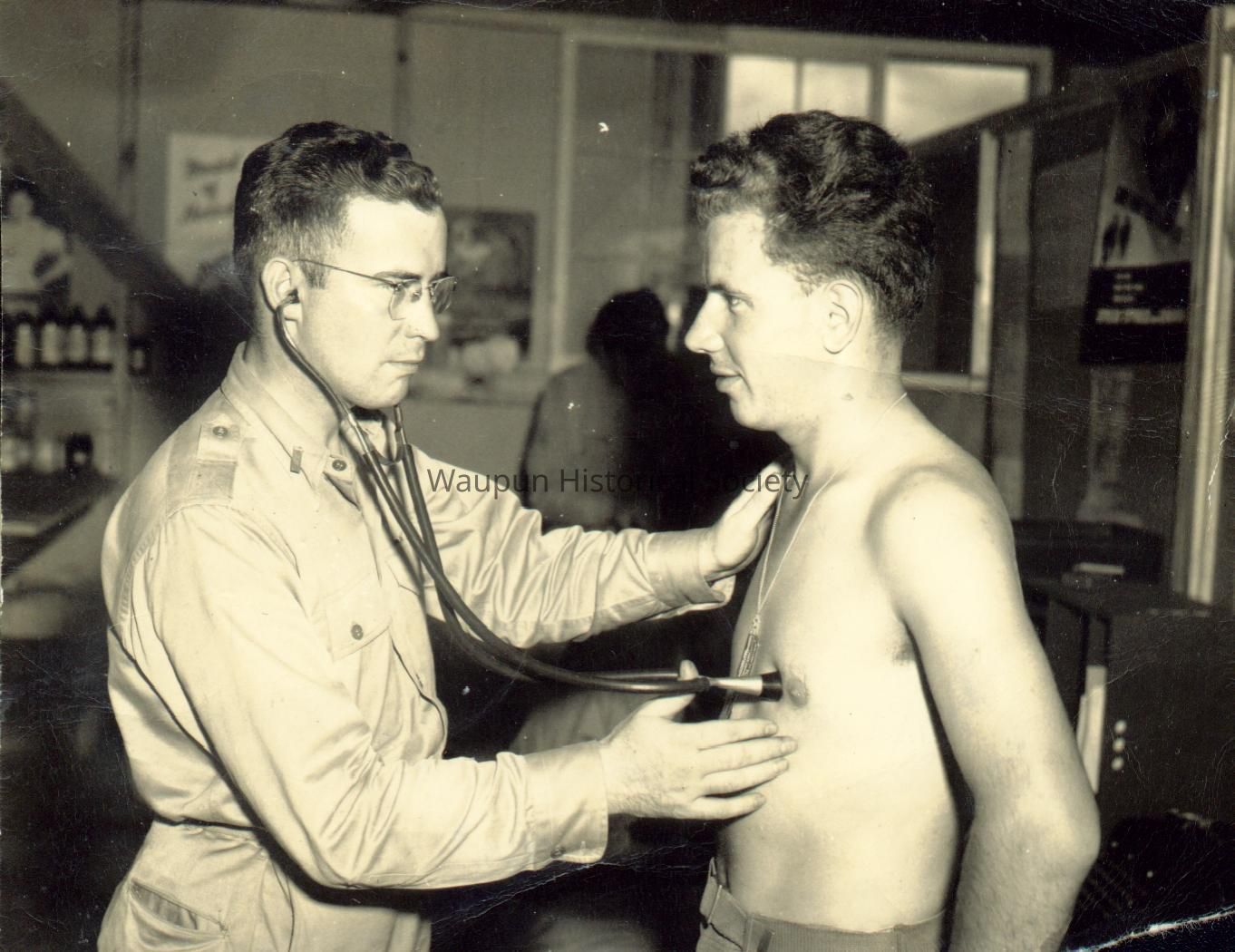 Mr. Walter Riel was a Sergeant with the 38th Photo Reconnaissance Squadron, 13th Air Force from 1942-1946. The Riel Collection is a series of photos that were given to the Waupun Historical Society by Mr. Riel. Walter getting a check-up.Acquisition