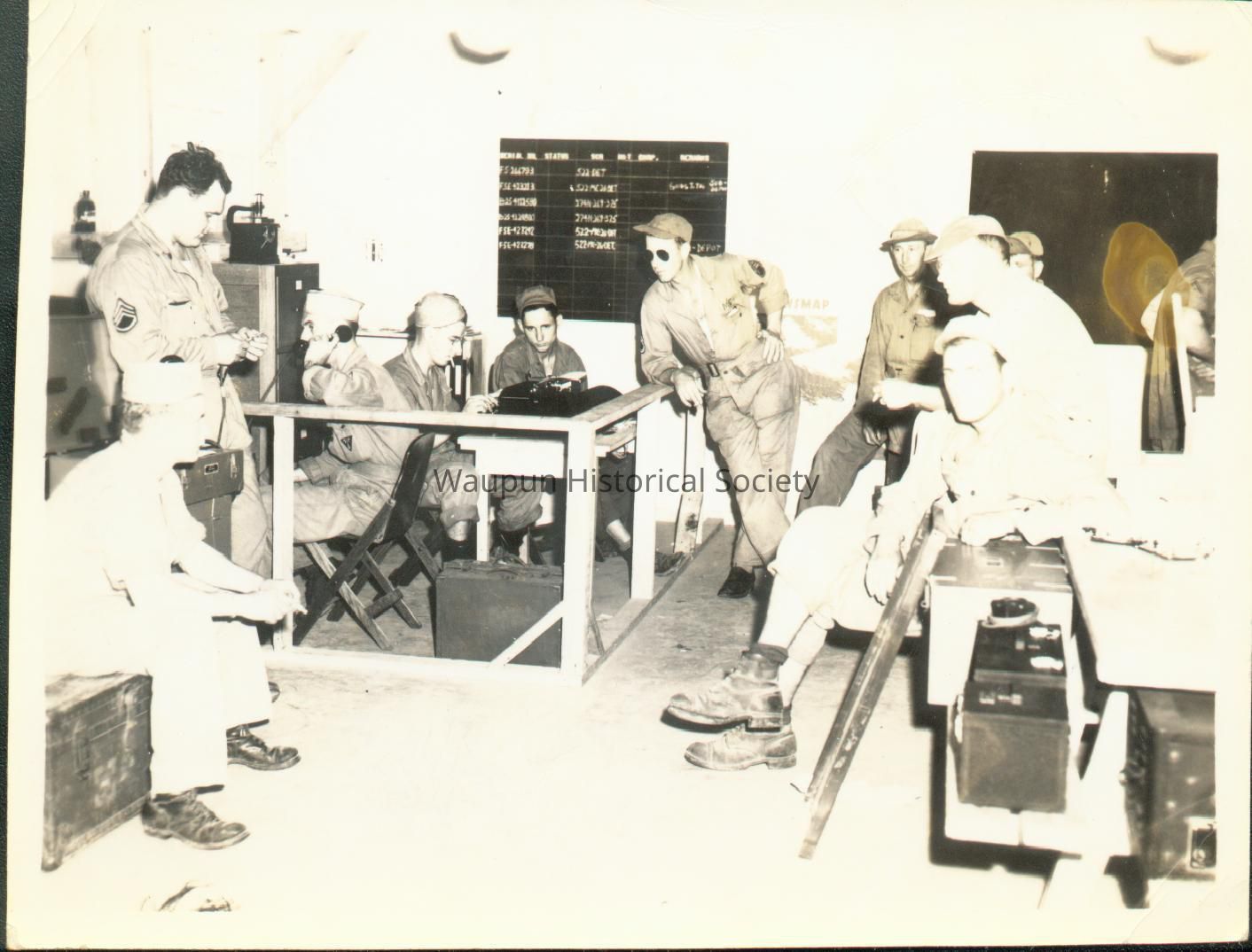 Mr. Walter Riel was a Sergeant with the 38th Photo Reconnaissance Squadron, 13th Air Force from 1942-1946. The Riel Collection is a series of photos that were given to the Waupun Historical Society by Mr. Riel. Communication Section of Muskogee AFB, OklahomaAcquisition