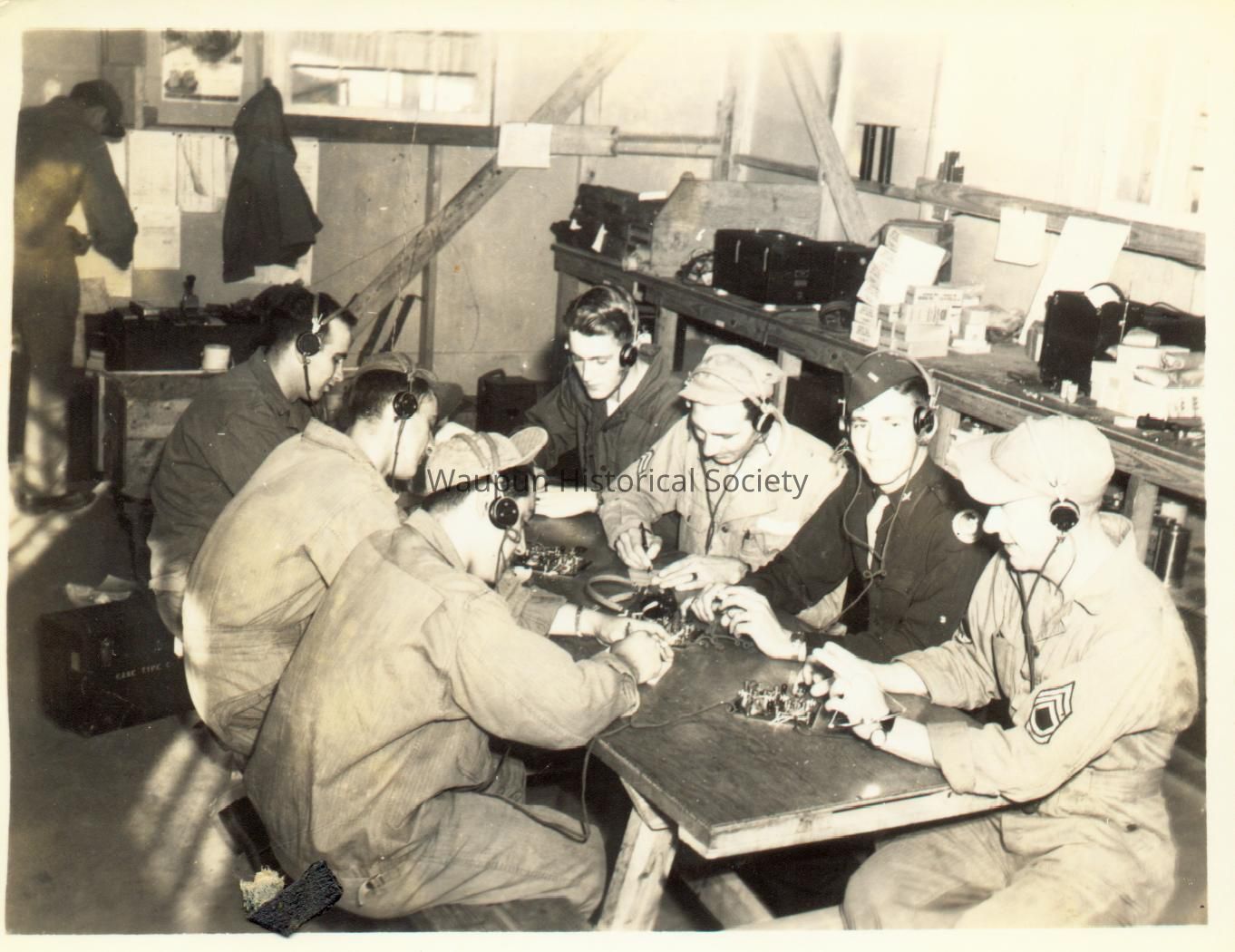 Mr. Walter Riel was a Sergeant with the 38th Photo Reconnaissance Squadron, 13th Air Force from 1942-1946. The Riel Collection is a series of photos that were given to the Waupun Historical Society by Mr. Riel. Learning Morse code during training.Acquisition
