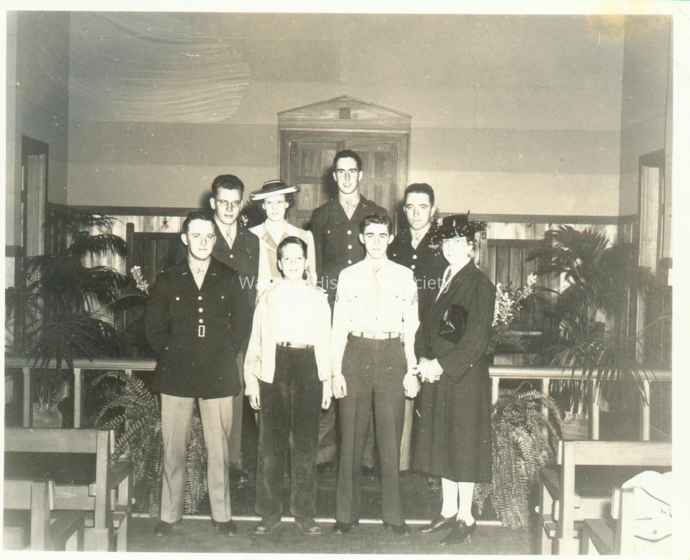 Mr. Walter Riel was a Sergeant with the 38th Photo Reconnaissance Squadron, 13th Air Force from 1942-1946. The Riel Collection is a series of photos that were given to the Waupun Historical Society by Mr. Riel. This photo shows the Bible study group at chapel at Will Rogers Field, Oklahoma.Acquisition
