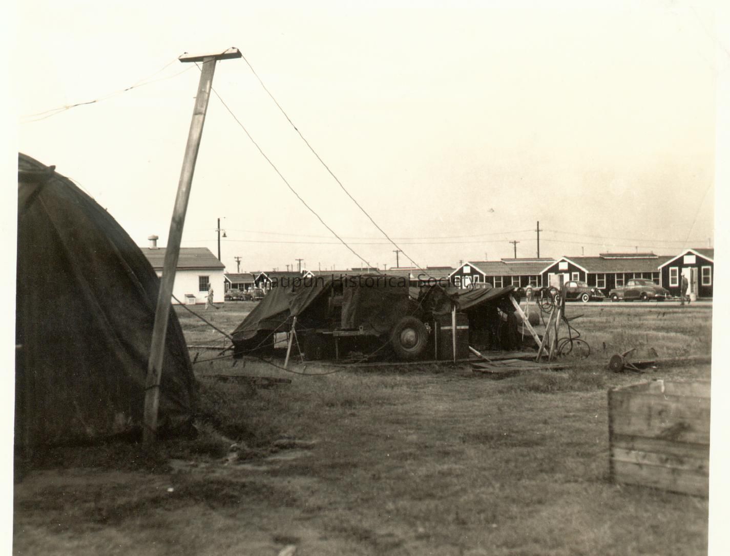 Mr. Walter Riel was a Sergeant with the 38th Photo Reconnaissance Squadron, 13th Air Force from 1942-1946. The Riel Collection is a series of photos that were given to the Waupun Historical Society by Mr. Riel. This photo shows the aftermath of a storm at Muskogee AFB.Acquisition