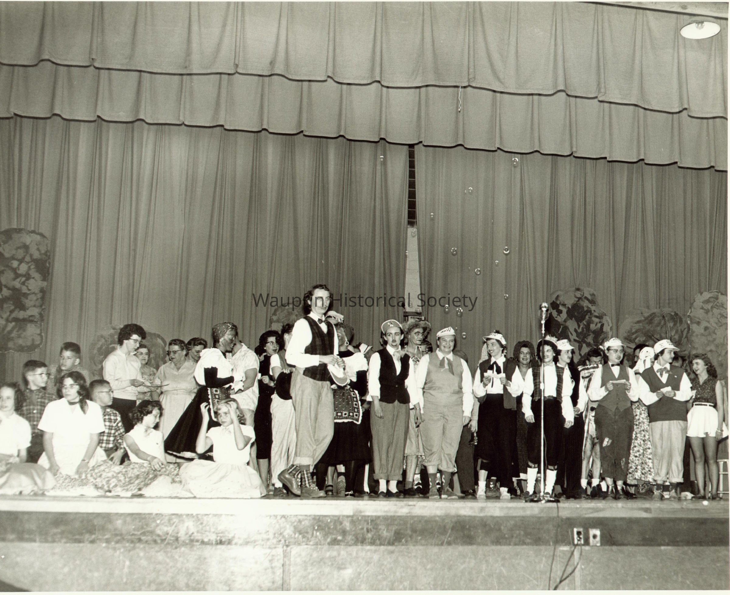 Photo from the Variety Show presented by THE WAUPUN COLLEGE CLUB AND KIWANIS CLUB on March 31 and April 2, 1960. The program was presented on the stage in the school on north west corner of Fond du Lac and Franklin Streets. At this time, this was the Waupun High School.