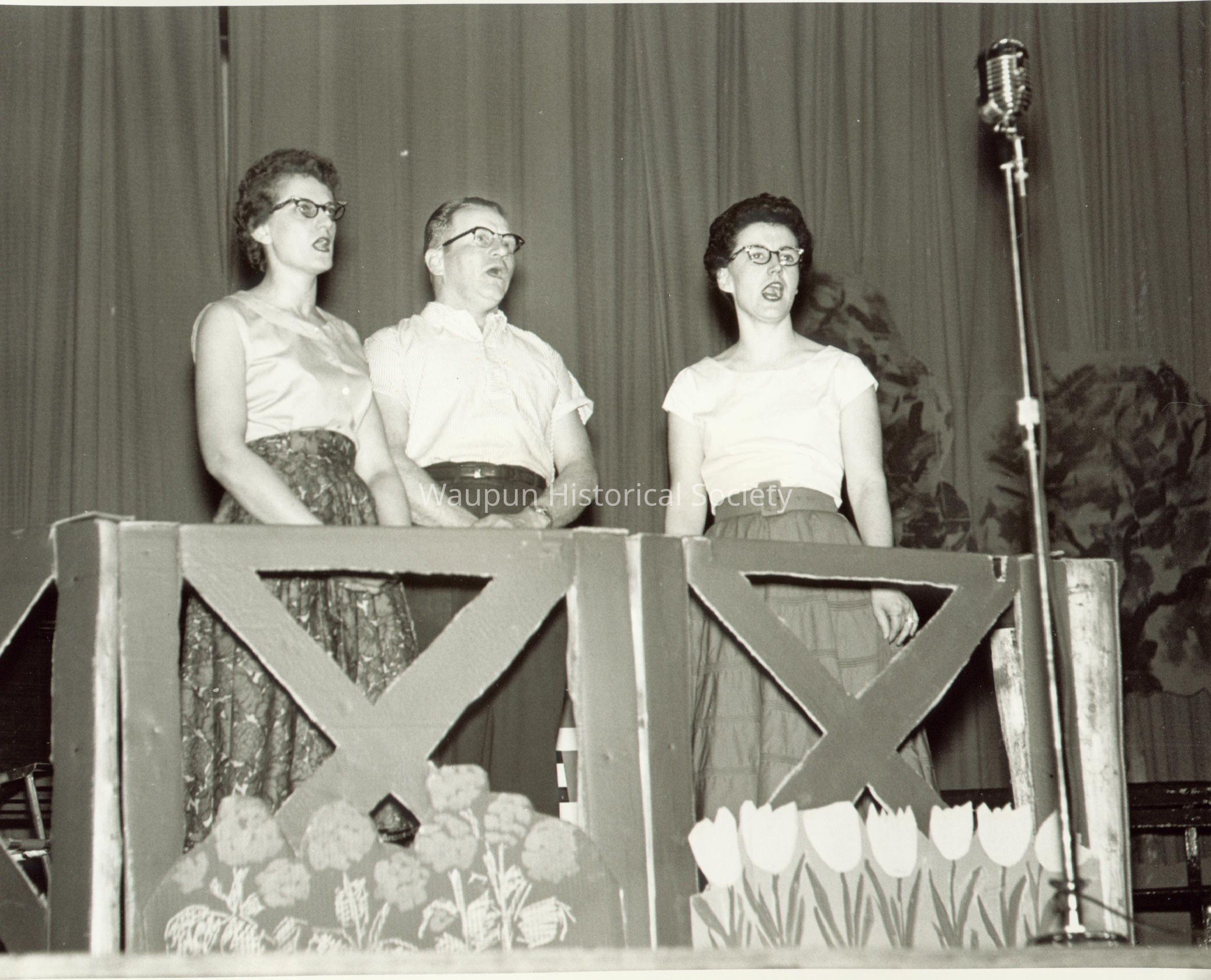 Photo from the Variety Show presented by THE WAUPUN COLLEGE CLUB AND KIWANIS CLUB on March 31 and April 2, 1960. The program was presented on the stage in the school on north west corner of Fond du Lac and Franklin Streets. At this time, this was the Waupun High School.