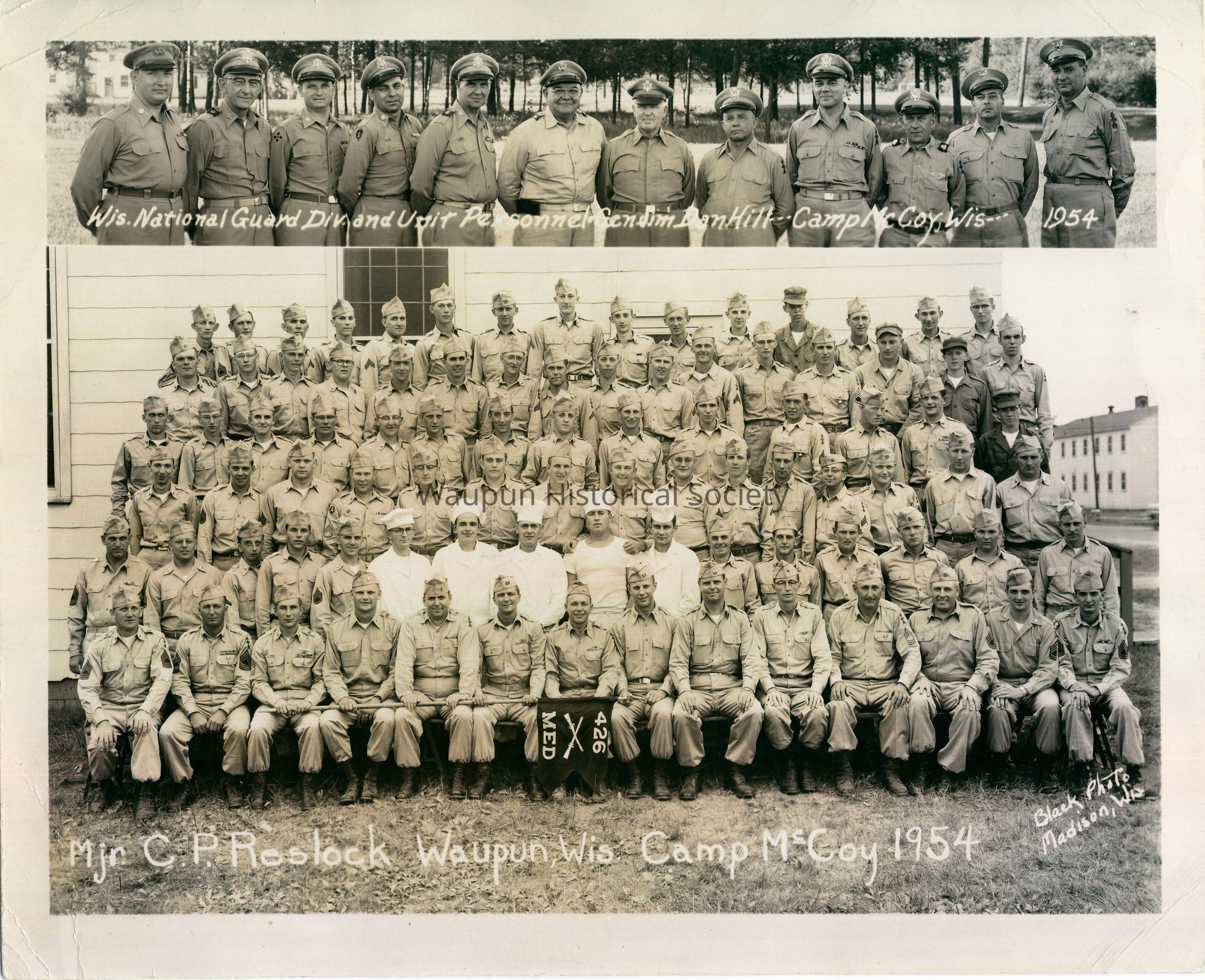 On the bottom of the photo says: Mjr. C. P. Reslock, Waupun, Wis. Camp McCoy of 1954.