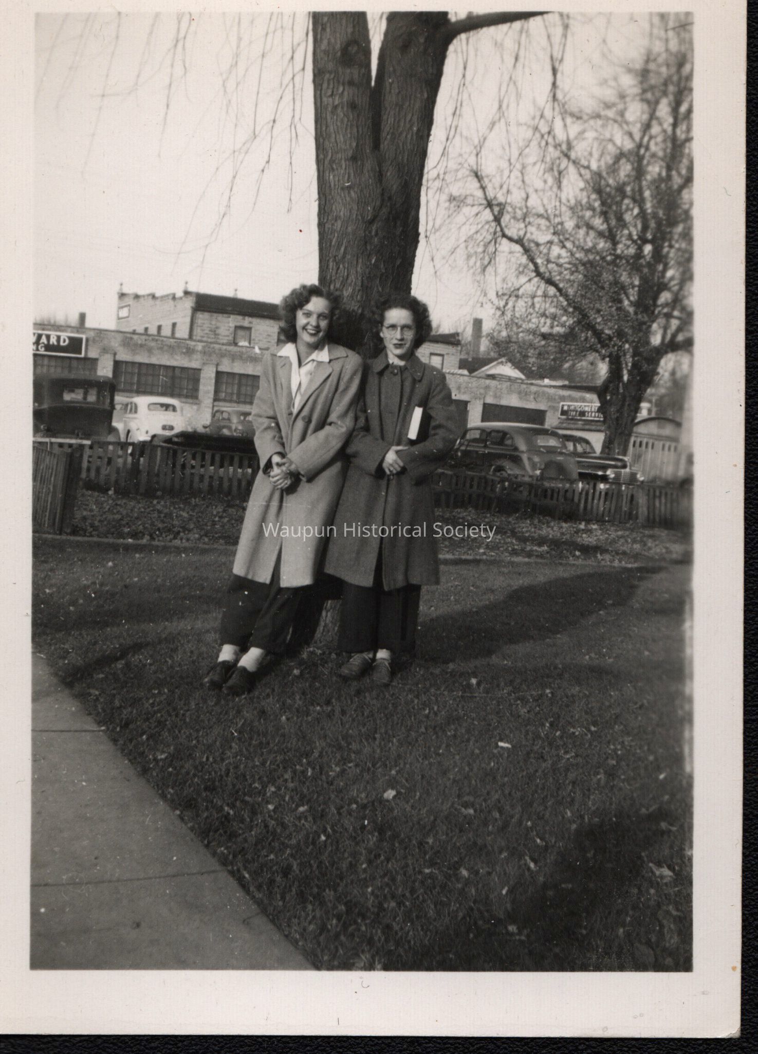 Believed to be Luella Jahn on left, light coat. She died in the March 1943 National Rivet/Shaler fire.Acquisition