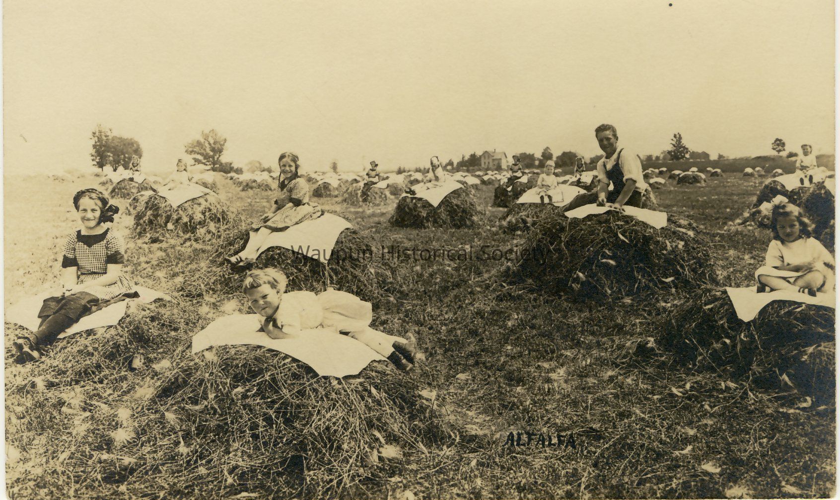 Alfalfa Field. This postcard is stamped Feb. 17, 1913 above a copyright mark on the back. Where the picture was taken or who the children are, is unknown.Acquisition
