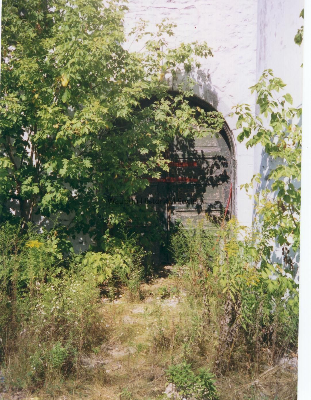 Mill Power Plant. This photo is part of a set of 6 photos taken by Jim Laird & donated to the museum. The show the doorway and stone work of the old mill power plant. These items were taken from the Union Church, (formerly located at 201 East Main St )after the fire of 1916.Acquisition