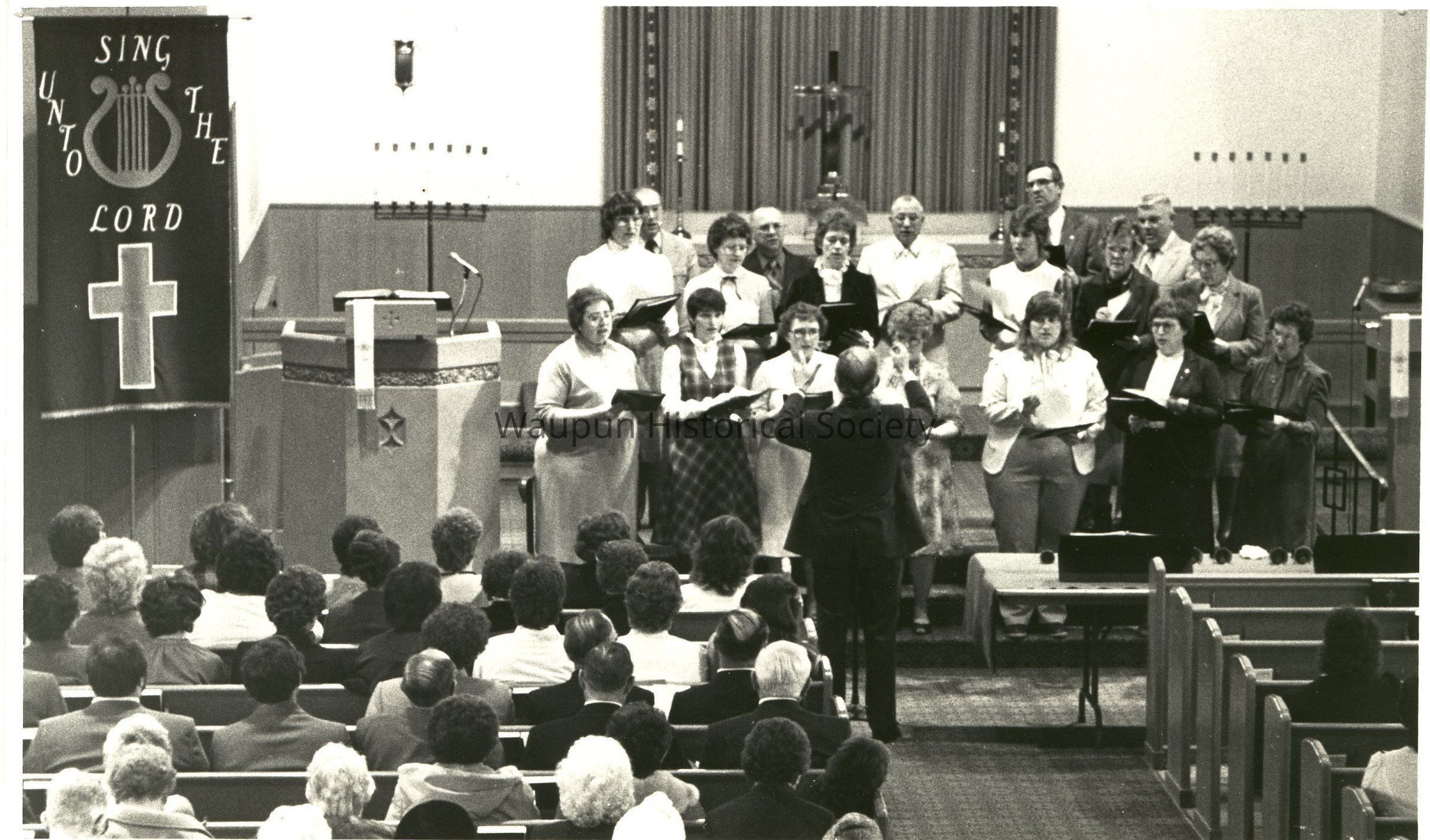 Photograph, Church, Bella Lutheran, Bach Fest. Pella Lutheran Church choir, Waupun, Edward Bernthal, Director. Feb. 19, 1985Acquisition