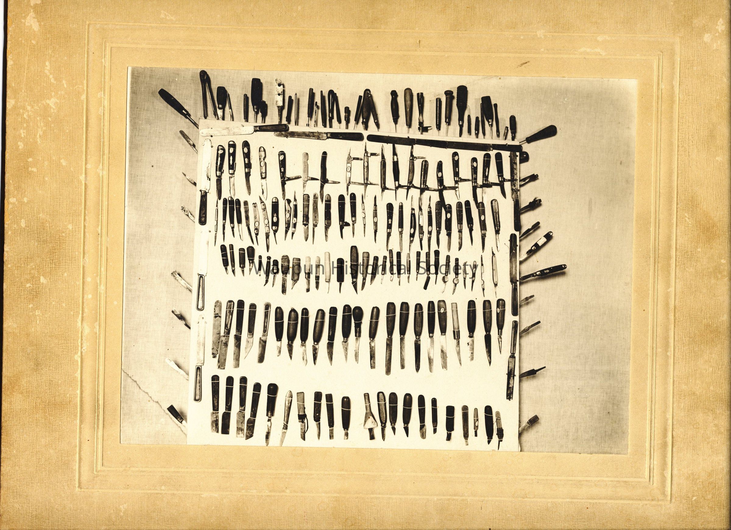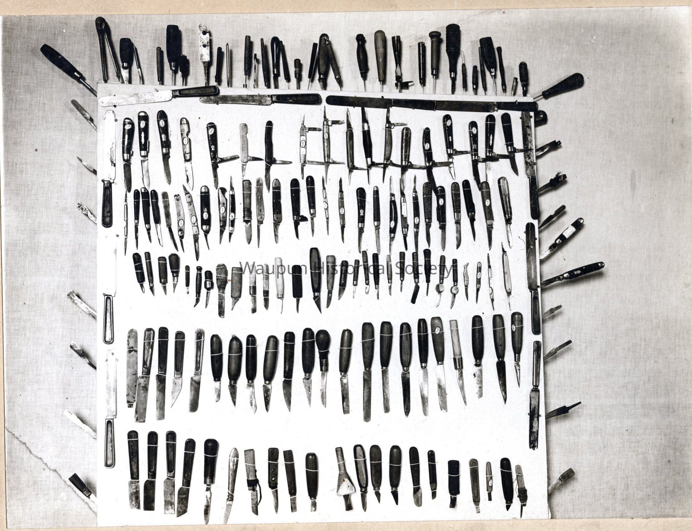Waupun State Prison Original Photo. Picture of articles taken from prisoners at the Wisconsin State Prison. Picture given by Harland Jeffers who got them from Rev. Woodward's niece, Jennie Woodward. Rev. Woodward was warden at the State Prison from 1911 - 1916.