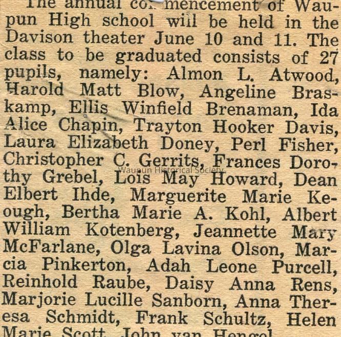 From a collection of photos found in an unmarked box in museum workroom. Please contact the Waupun Heritage Museum at 22 S. Madison St., Waupun, WI 53963. Phone 920-324-7931.