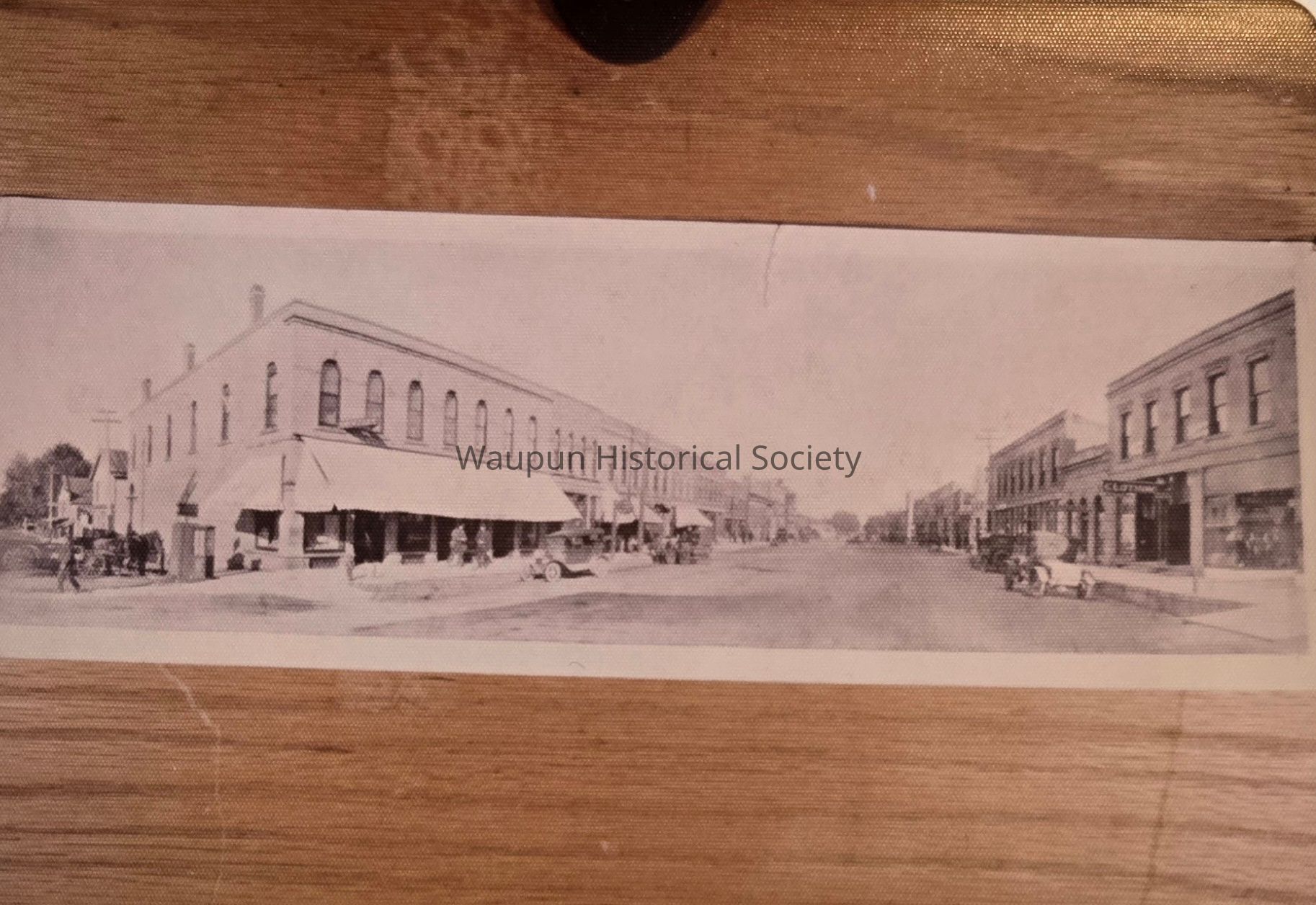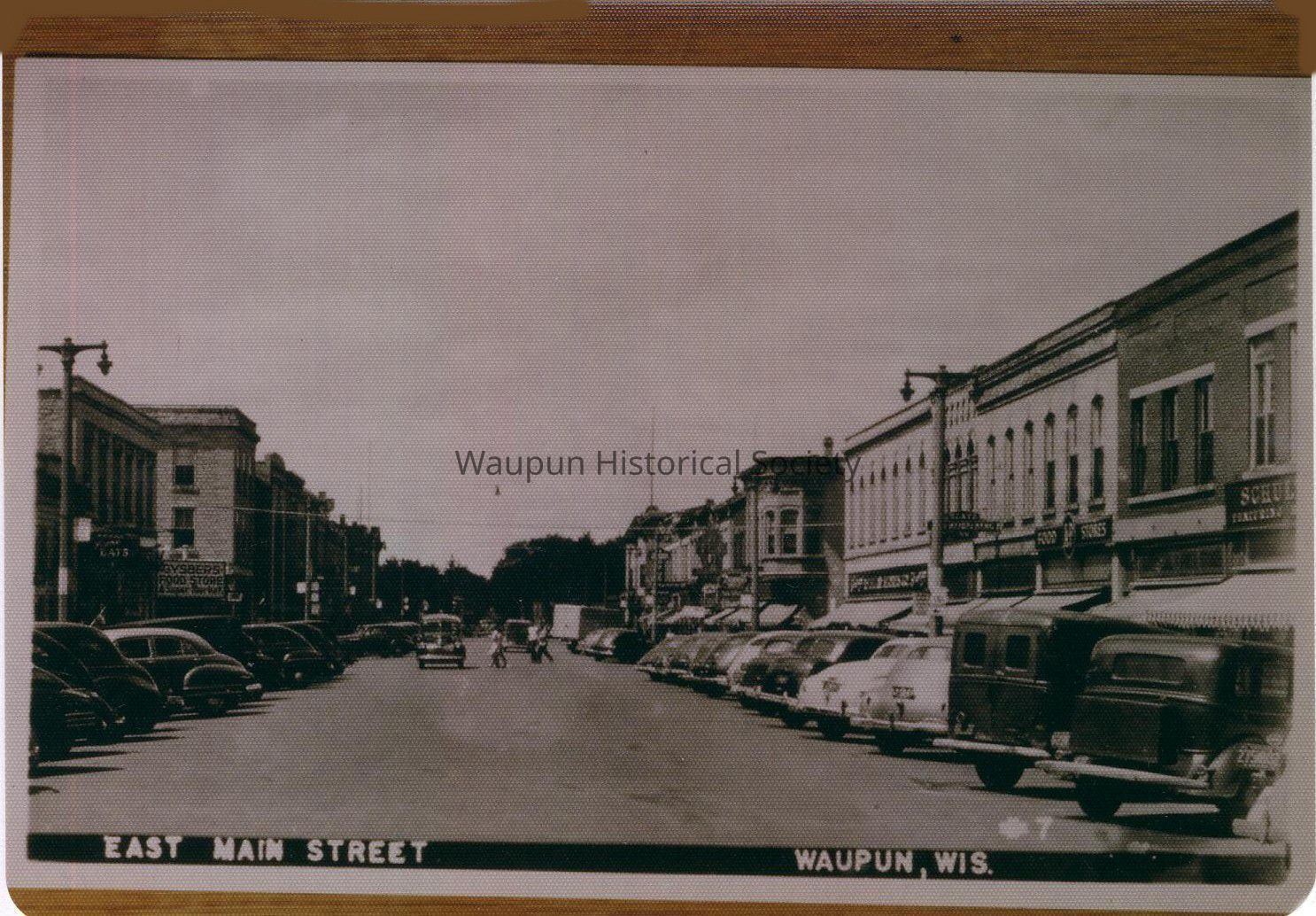 Main St. Black & White postcard showing the 200 block of Waupun's main st. facing west.Acquisition