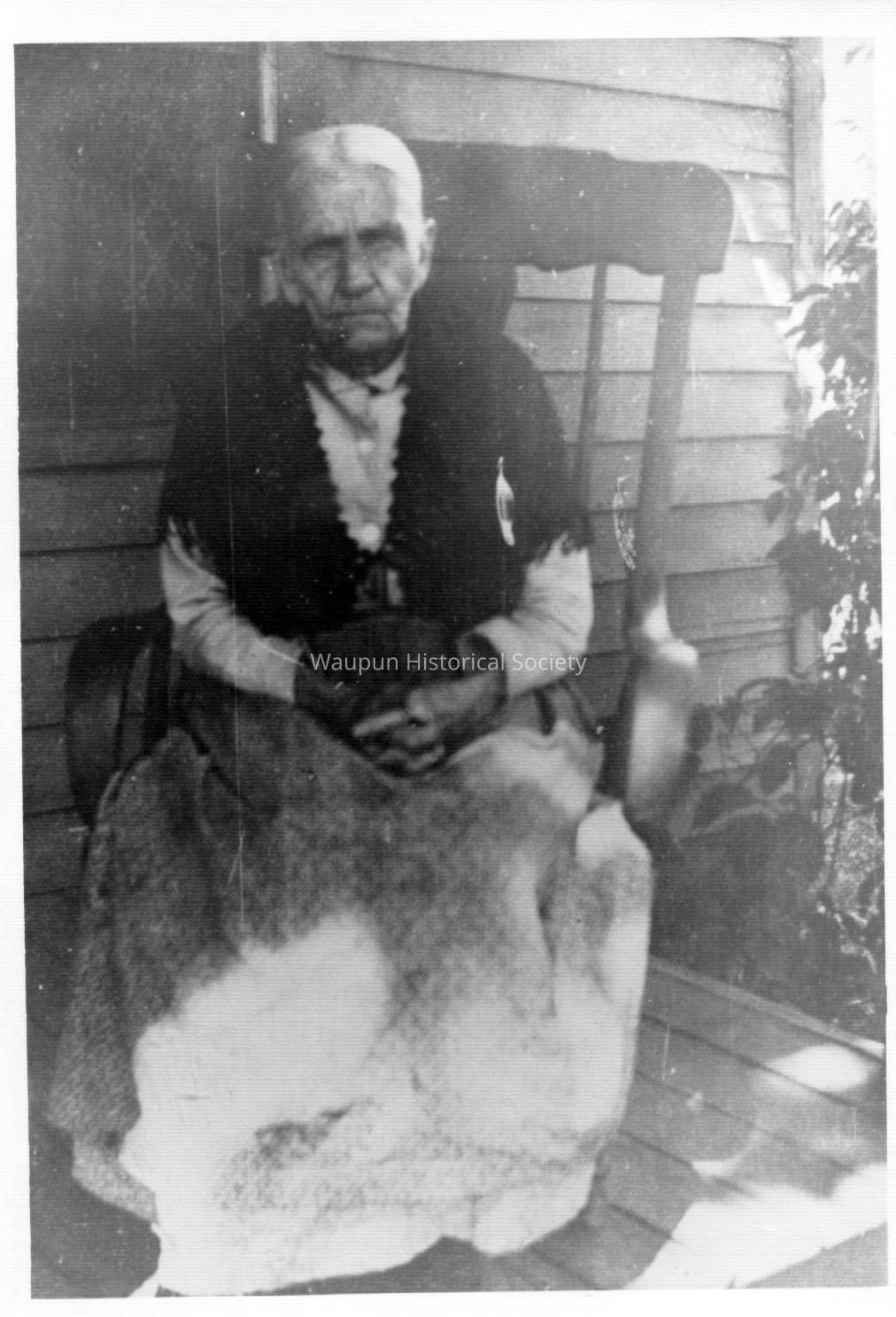 Written on the back: Nancy (Silvernail) Wilcox, No. 2 wife of Hemon B. Wilcox. She had children all by Silvernail; Henry, Charles, Maria (Silvernail) Viall, Emma Wheaton. No children by Hemon Wilcox. She was 1st married to Bartus Silvernail. He is buried in Oak Center, a small cemetery just ourside of Oak Center, he was killed by team running away on "Break Neck Hill."