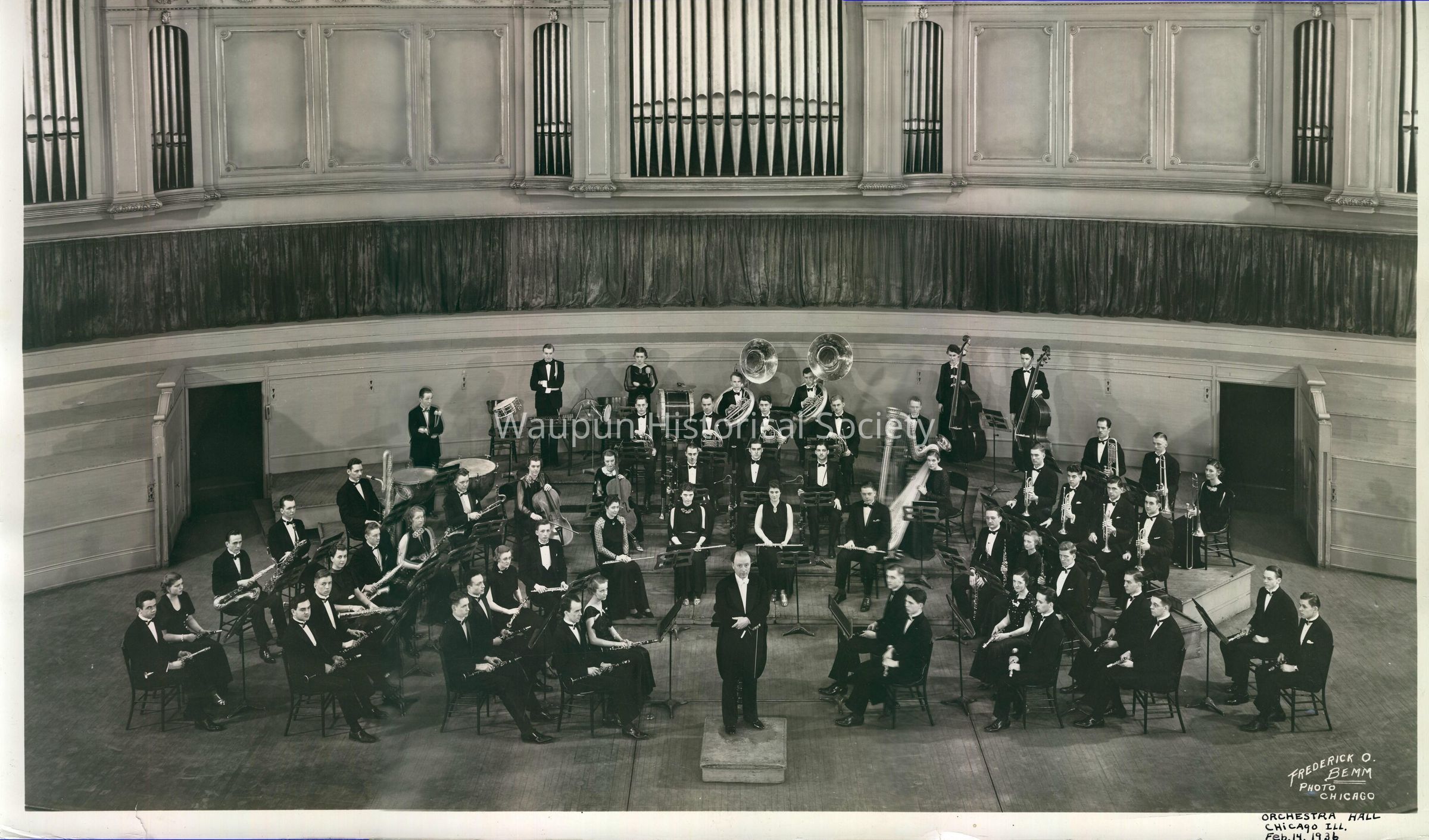1936 - Performance of a Waupun High School musical group in Chicago, IL. Possibly under the direction of Mr. Otto J. Kaushaar.Acquisition
