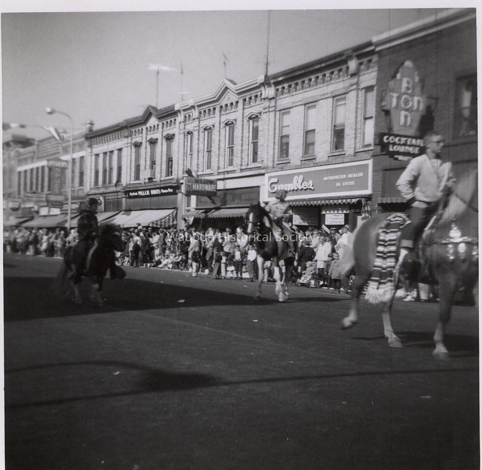Parade Photos on Main Street Waupun. Dated October 1957. This photo is one of 20 some photos given to the Waupun Historical Society on April 9 2001, by the Fairwater Historical Society. The parade is not identified.Acquisition