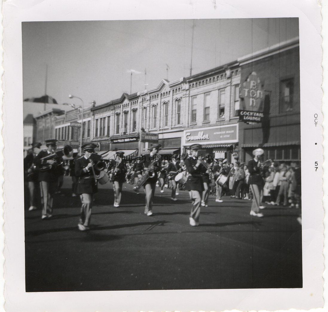 Parade Photos on Main Street Waupun. Dated October 1957. This photo is one of 20 some photos given to the Waupun Historical Society on April 9 2001, by the Fairwater Historical Society. The parade is not identified.Acquisition