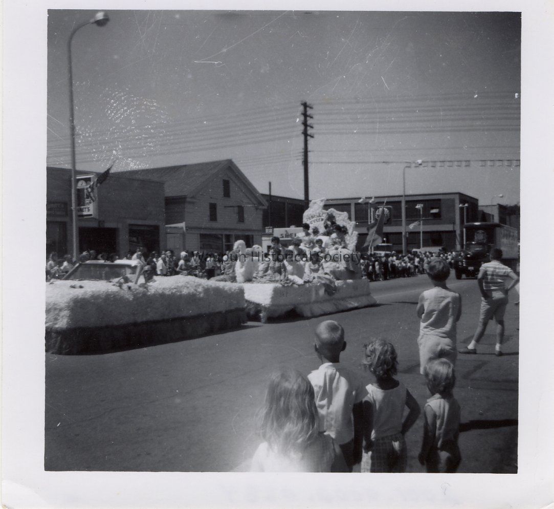 Parade 1964. This is an original photo taken at an unknown parade on main street in waupun in front of the Beau & Belle Home furnishing company. The Company was located at 111 E. Main Street and owned by Gerald J. Harmsen.