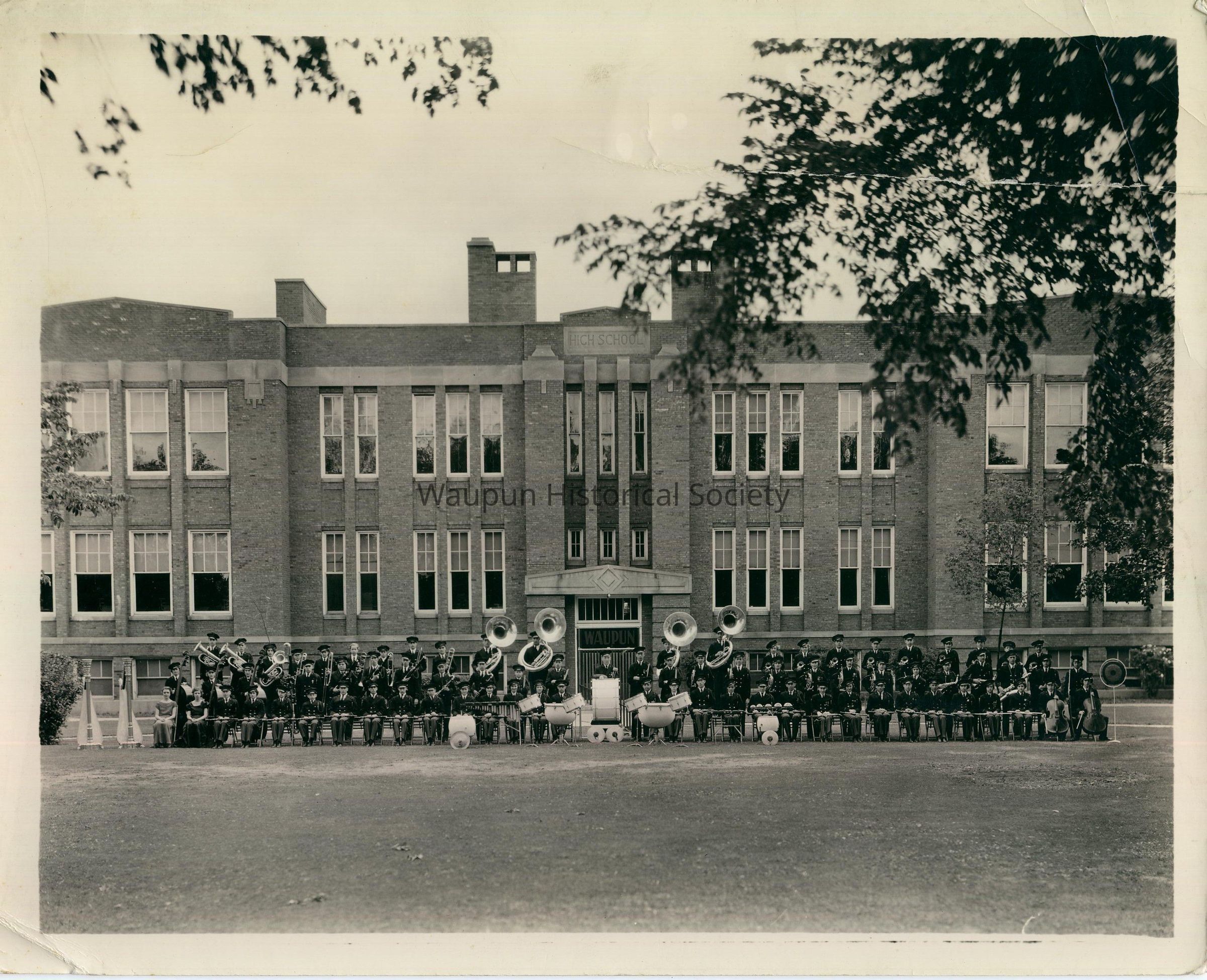 Photograph, Waupun High School Band, In Front of High SchoolEntry/Object ID