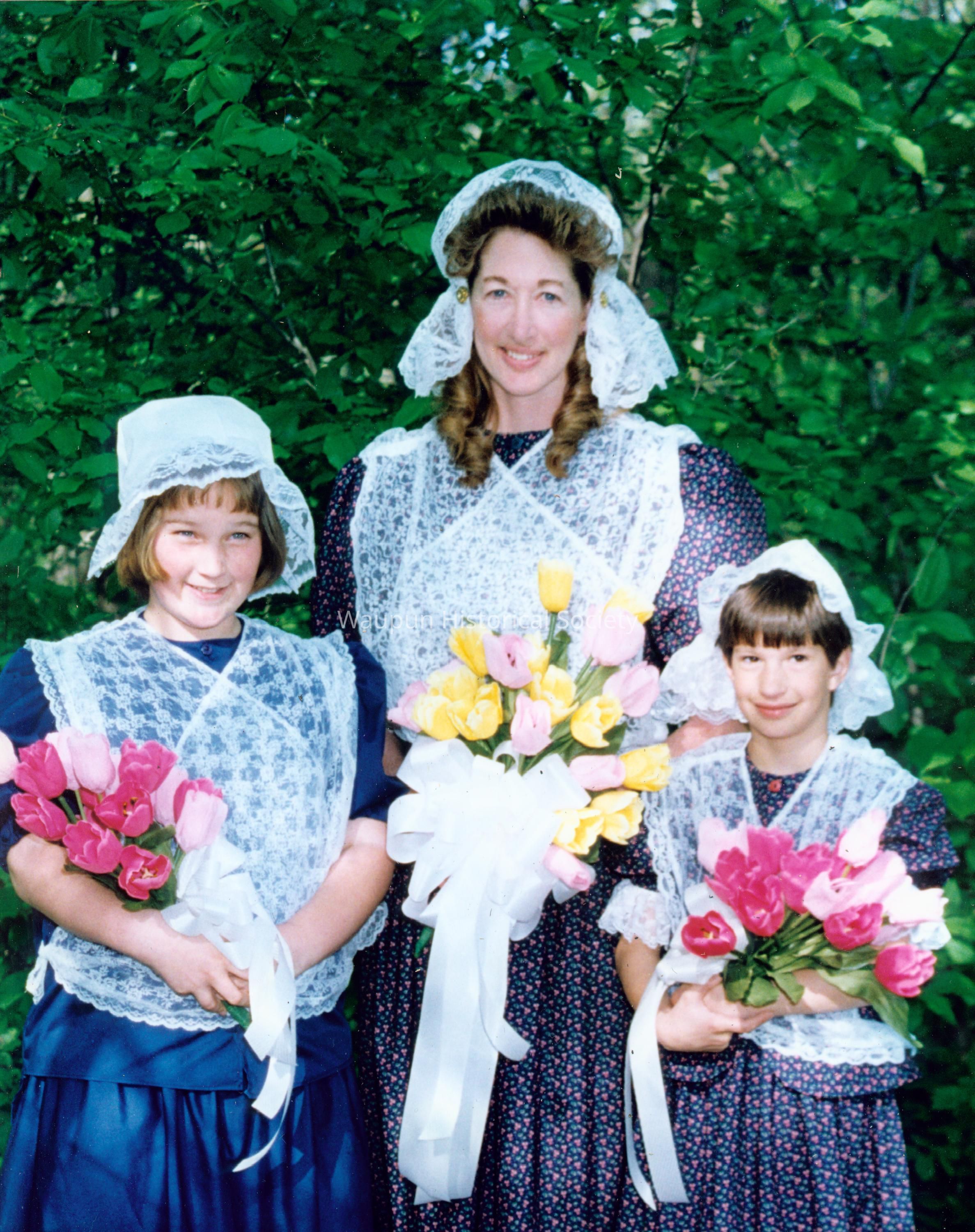 Picture of the 1996 Klompenfest Queen, Mary Dull, and Princesses Kimberly Stobb and Ashley Montsma. Klompenfest was a local festival that operated from 1992 to 1998. In 1998 the committee disbanded and converted their funds to build the Wind Mill on Brandon Street.Acquisition