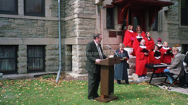 Photos taken during the Dedication of The Citadel Statue. Shows James Charles Laird at podium, Methodist Minister Doris Hanson, Ann Lemmenes and the Immanuel Lutheran Church Alleluia Singers.Acquisition