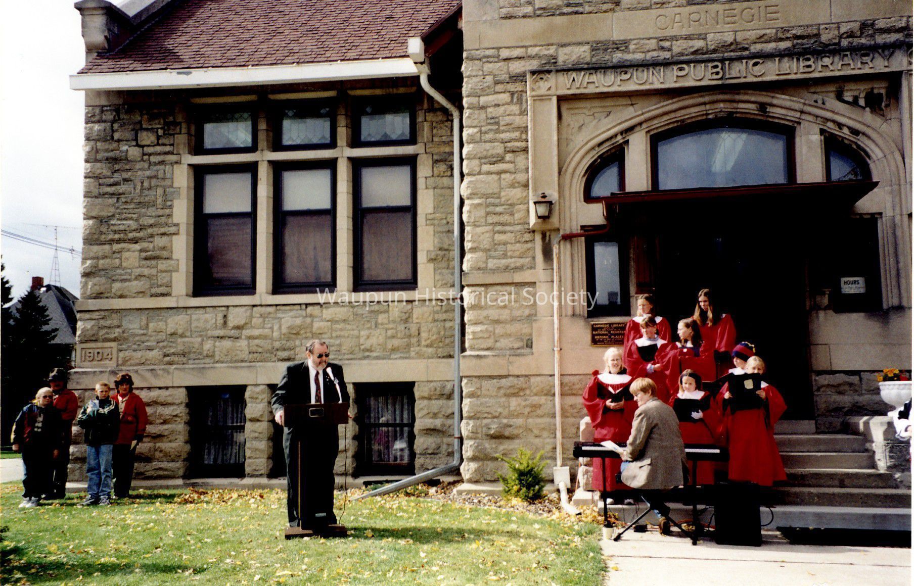 Photos taken during the Dedication of The Citadel Statue. On the left are members of Boy Scout Troop #711, James Charles Laird is at the podium, at the right Ann Lemmenes is sitting at the organ and directing the Immanuel Lutheran Church Alleluia Singers.Acquisition