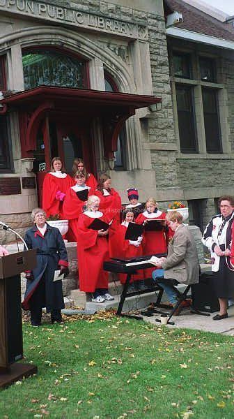 Photos taken during the Dedication of The Citadel Statue. Shows Methodist Minister Doris Hanson, Immanuel Lutheran Church Alleluia Singers, Ann Lemmenes, and State Representative Carol Owens.Acquisition