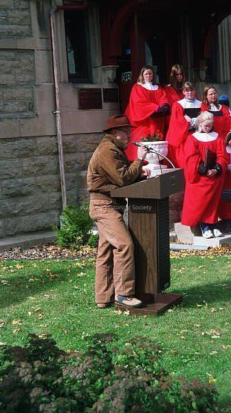 Mr. Tony Rajer, Art Conserator, at the podium during the dedication.