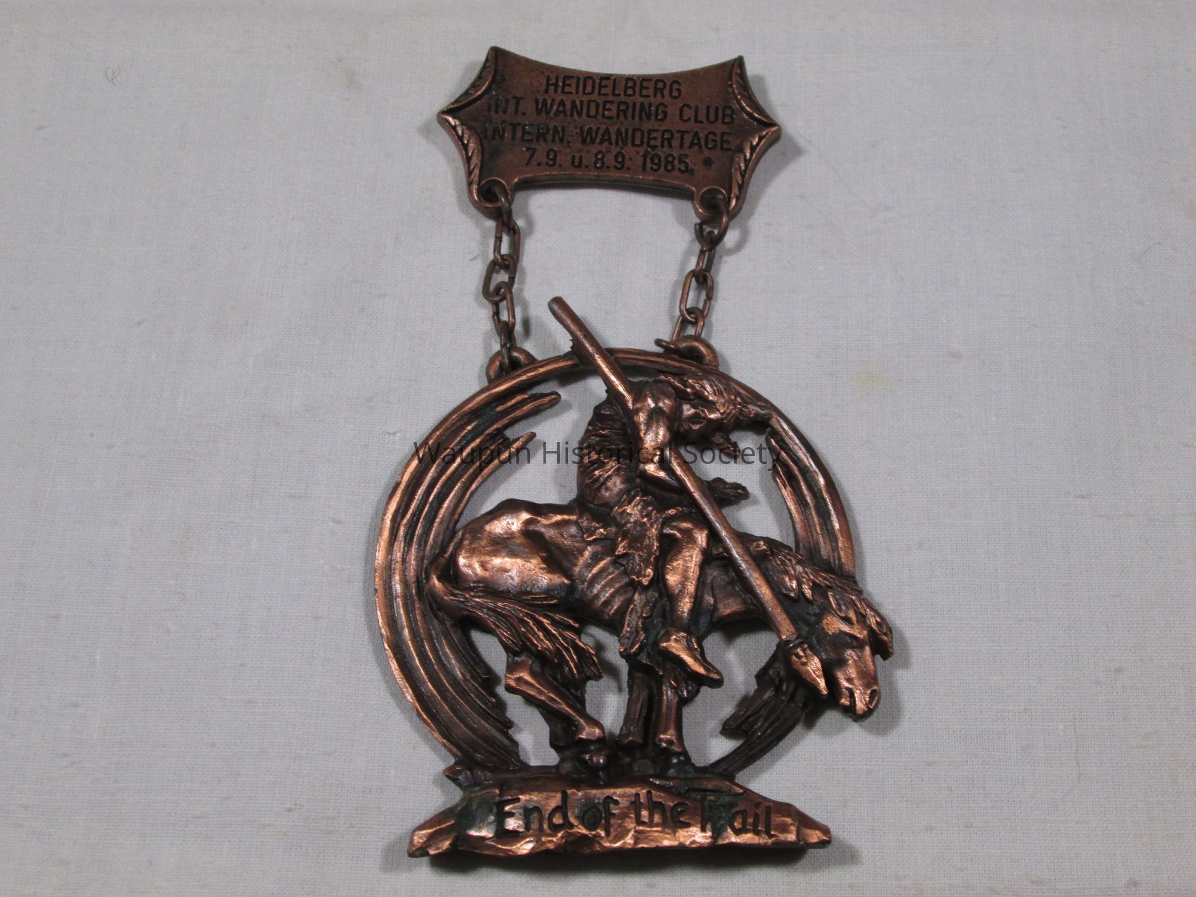 1 - Pin Heidelberg Int. Wandering Club Intern, Wandertage 7.9. u. 8.9; 1985. End of the Trail at the bottom and copper in color.Acquisition
