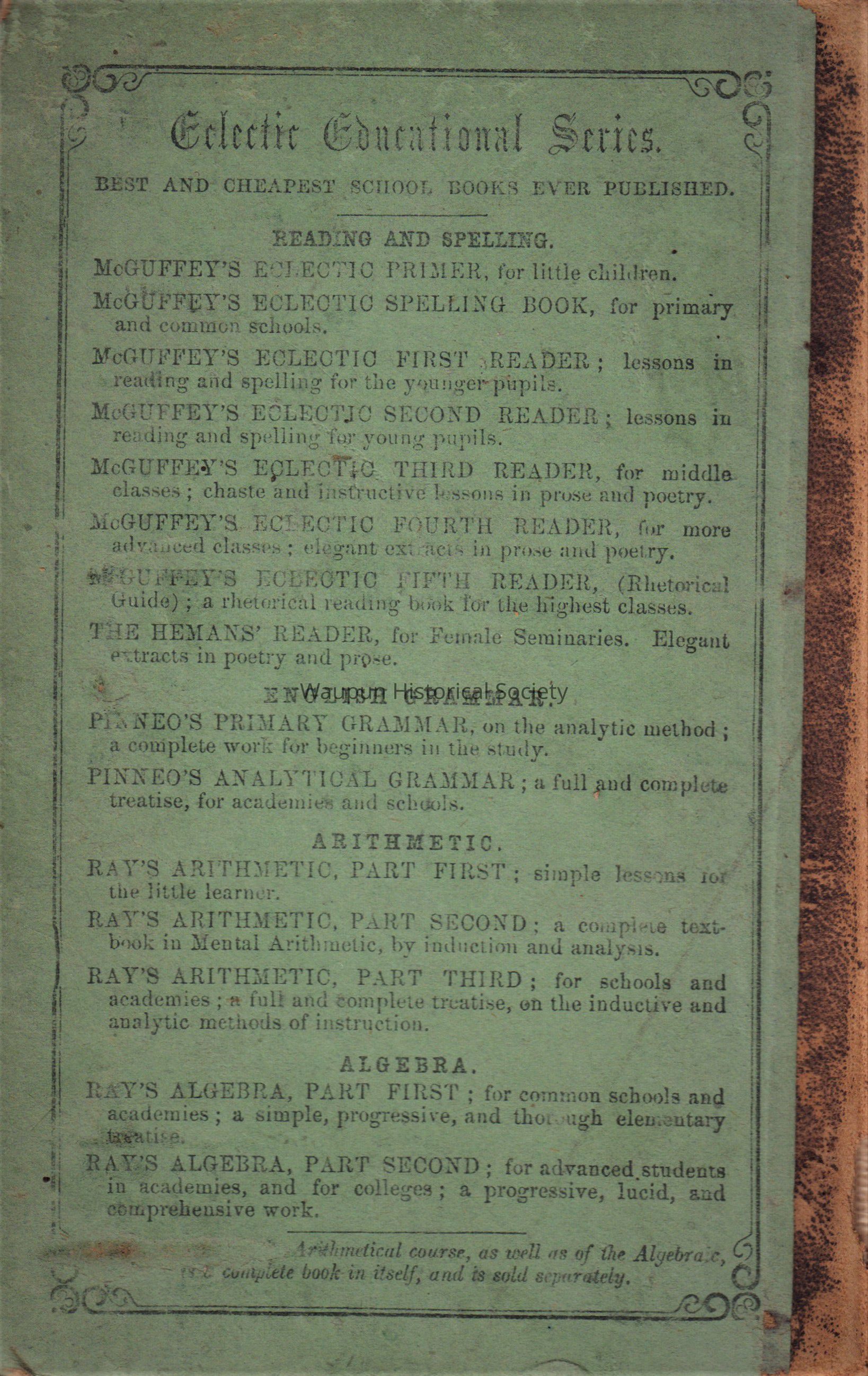(1854) BOOK /PINNEO'S PRIMARY GRAMMAR/ GREEN HARD BACK COVER/BLACK PRINT/WHITE PAGES /BLACK PRINTING INSIDE /160 PAGESAcquisition