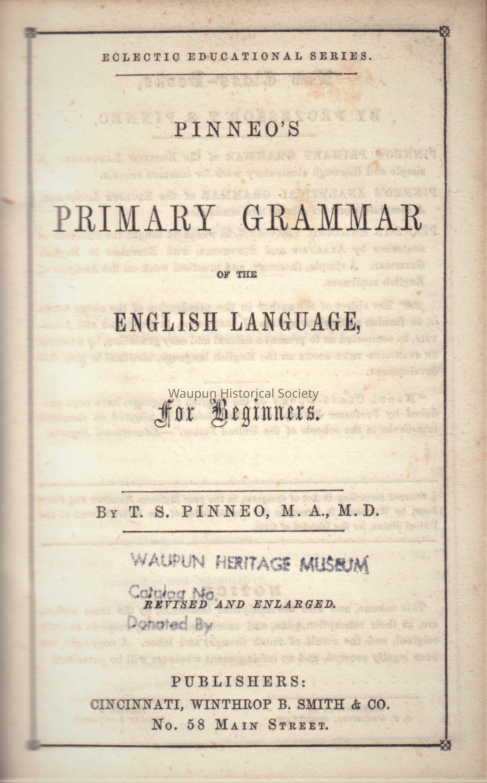 Book, Pinneo's Revised and Enlarged Primary GrammarEntry/Object ID