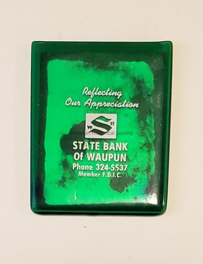 Pocket Mirror, State Bank of Waupun, Green