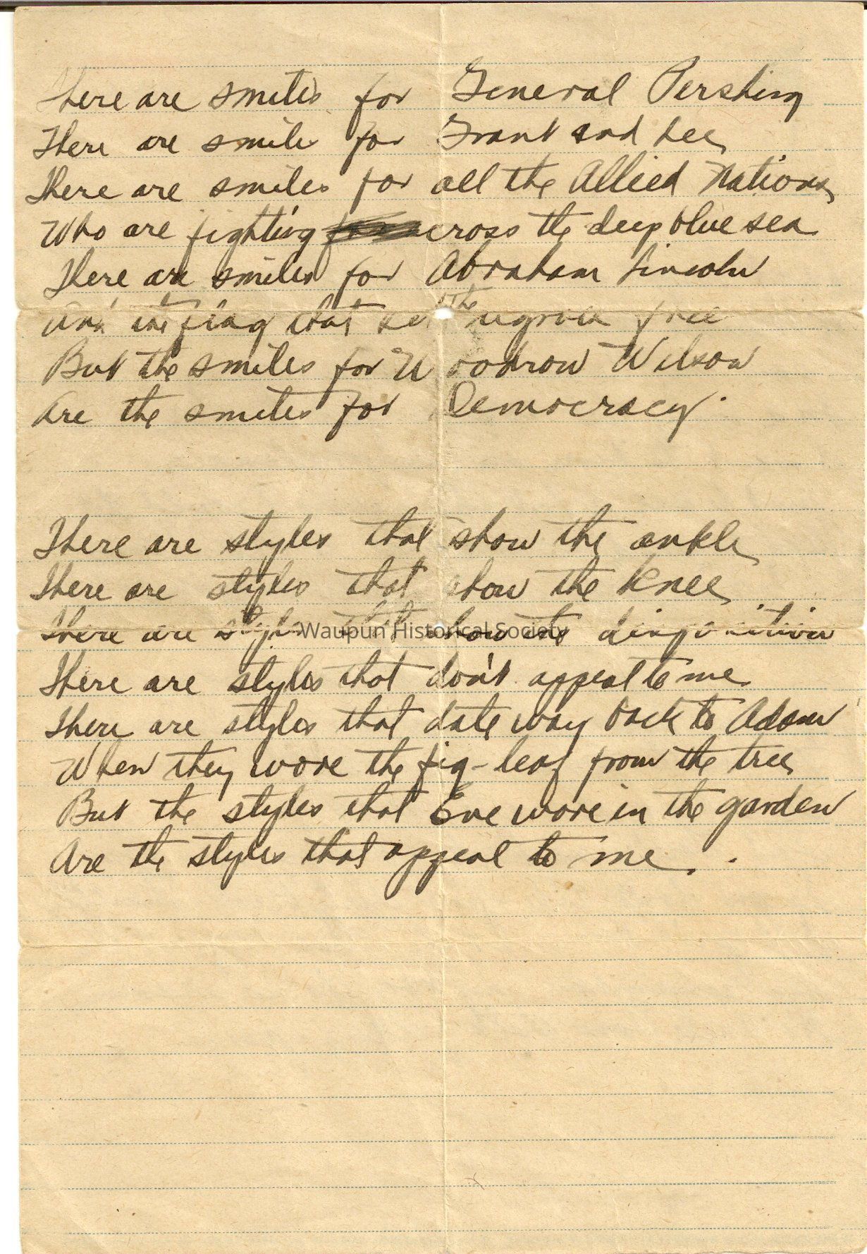 Four short poems written on stationary from the YMCA. From the content it would appear it is the writings of a soldier though there is no signature.