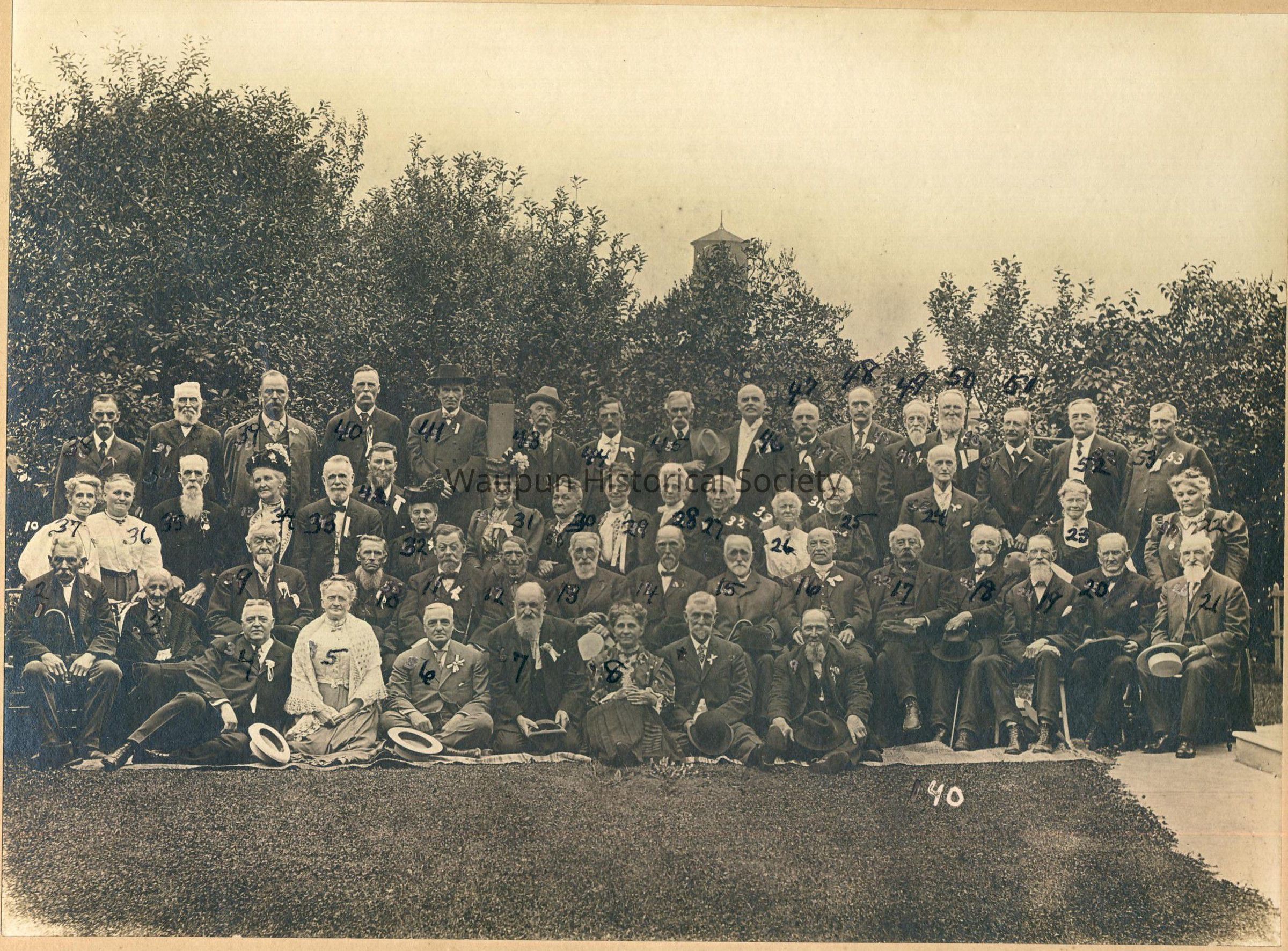 Second row from R to L:21. A Sofer, Ripon, 22. Mrs. Anna Johnson, Kloss. Mich., 23. Mrs. W.E.Scott, 24. W. S. Cotes, Chicago, 25. Mrs. Ora Heath, 26. Mrs. Warren Wilkes,
