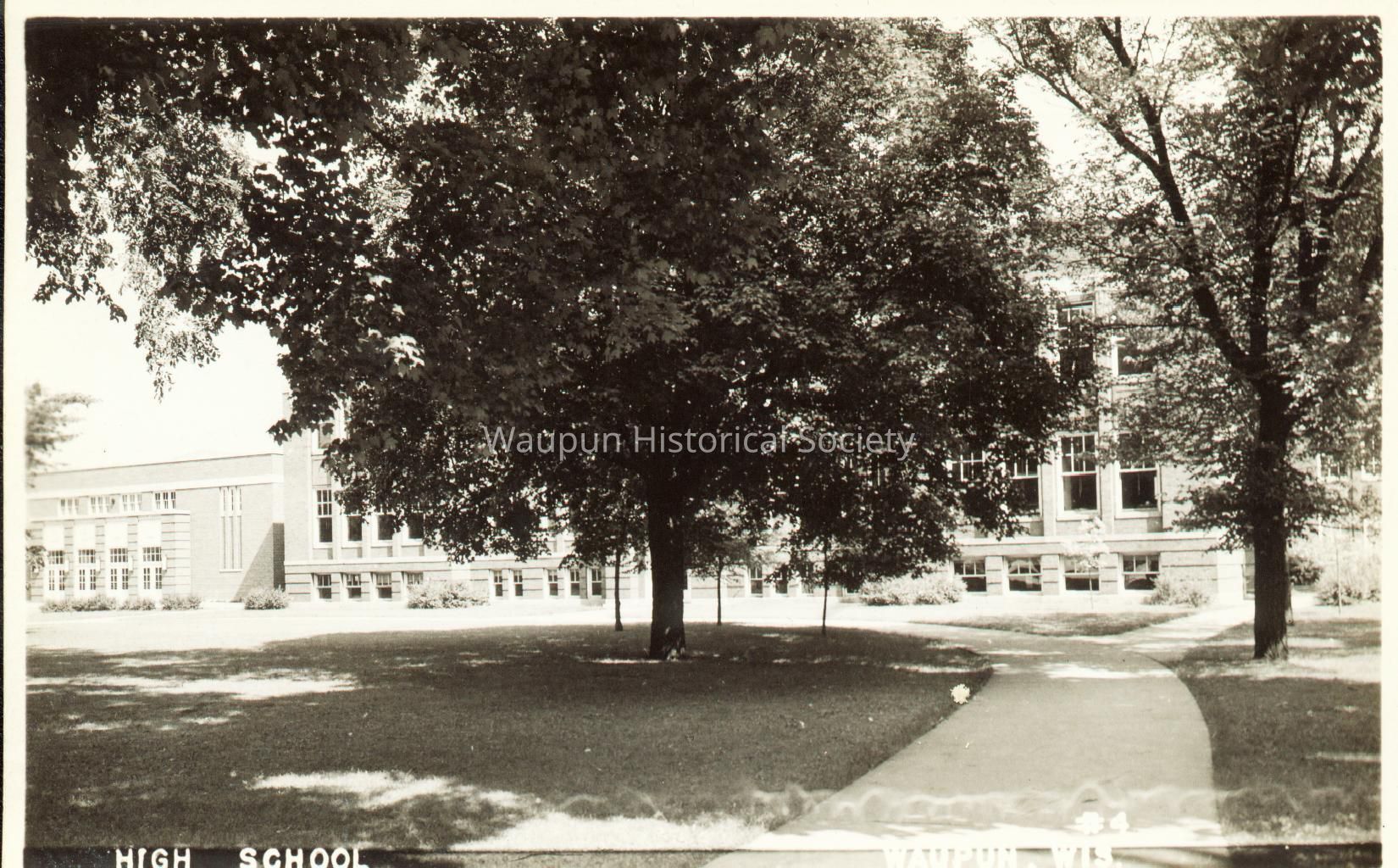 The 1913 high school after several additions. The picture shows two additions, one to the left (west) and one on the right (northeast).Acquisition