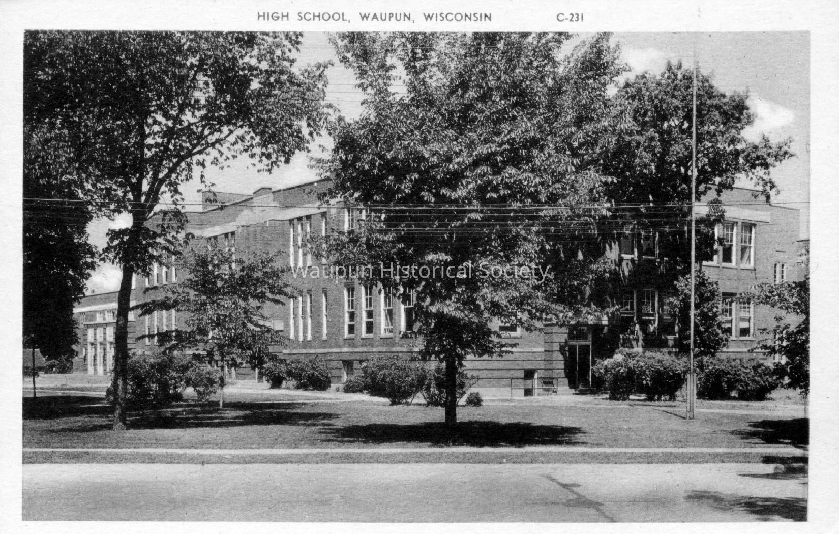 The 1913 high school after several additions. The picture shows two additions, one to the left (west) and one on the right (northeast).Acquisition