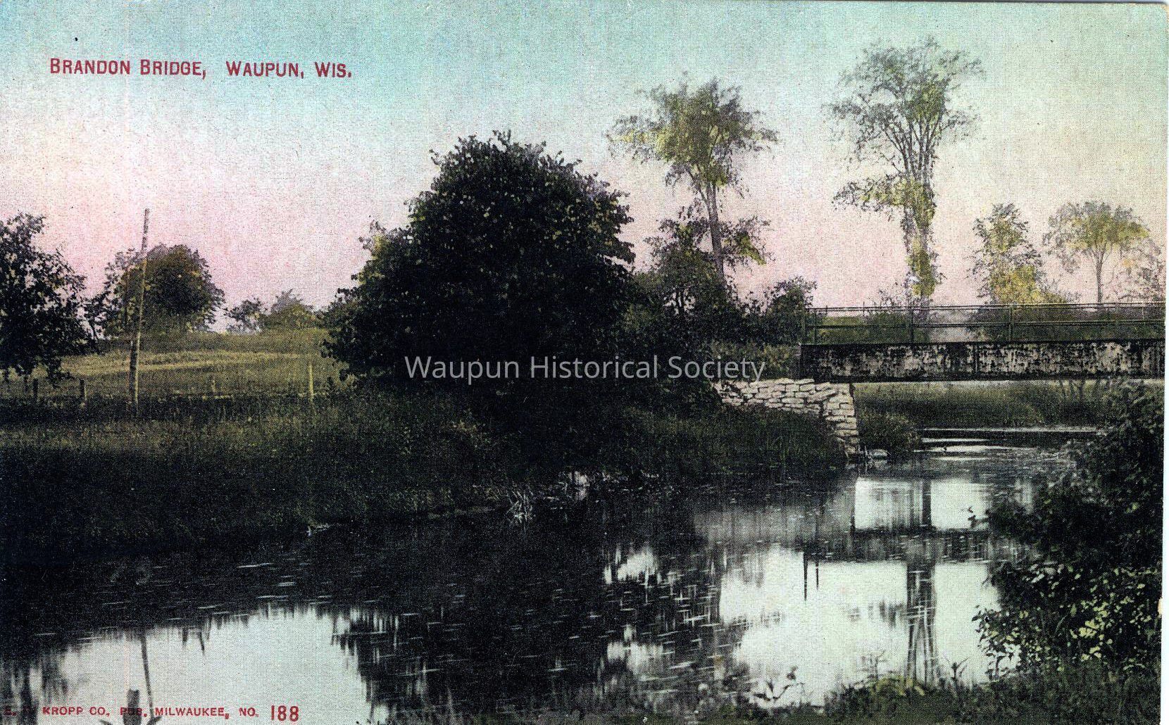 Bridges. This picture postcard shows a colorized version of the Brandon Bridge. Printed and cataloged by the Keoff Co. of Milwaukee no. 188Acquisition