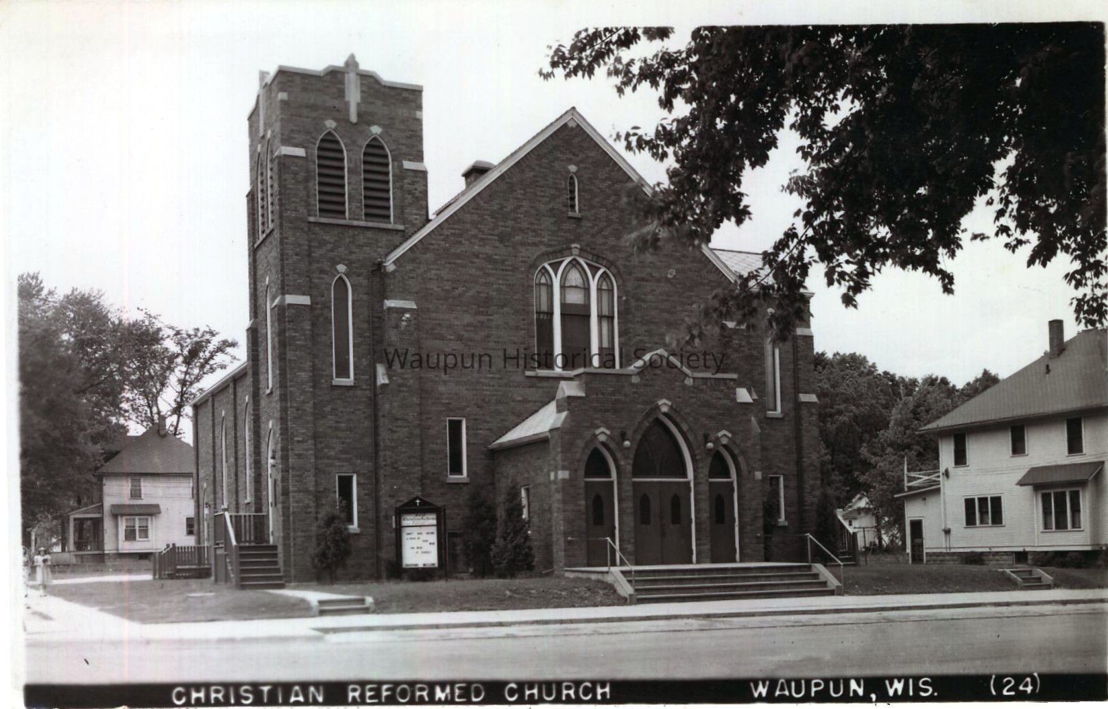 Postcard, Church, Christian Reformed, #24. Waupun Churches. This Black & White picture postcard shows the Christian Reformed Church of Waupun, Wis. It was donated by Jim Laird from his personal collection. This is an unused postcard.Acquisition