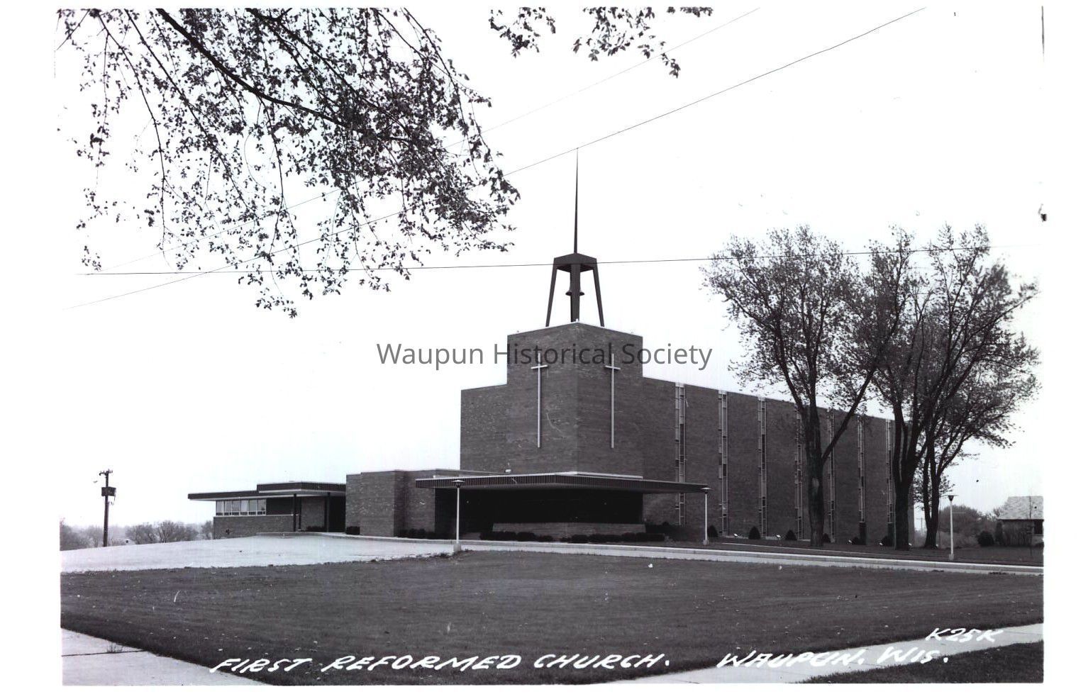 Postcard, Church, First Reformed, #K25K. Waupun Churches. This Black & White picture postcard shows the First Reformed Church of Waupun, Wis. It was donated by Jim Laird from his personal collection. This is an unused postcard.Acquisition